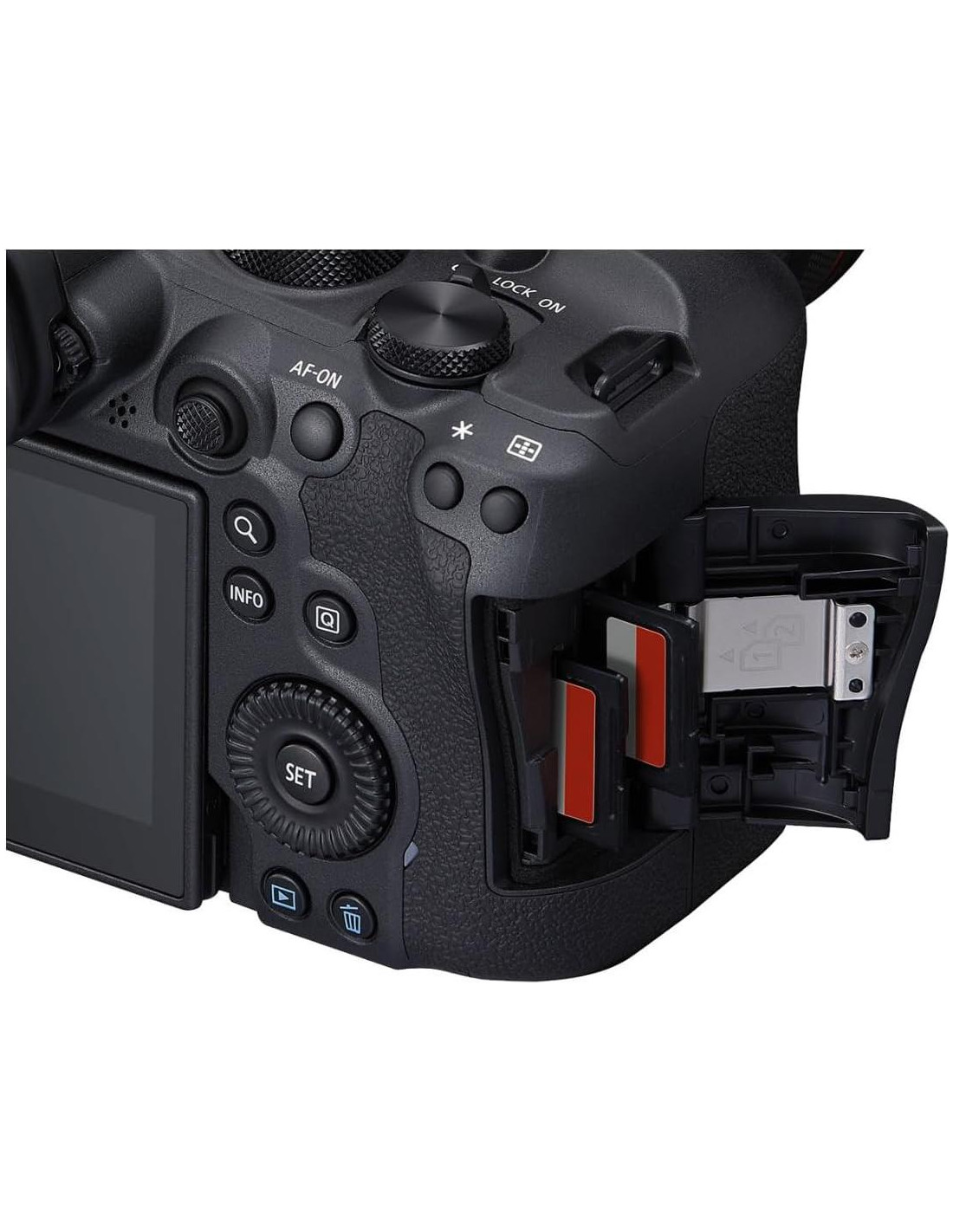 - CONECTIVIDAD POR CABLE: La R6 Mark II cuenta con un puerto USB Tipo-C9 que te permite conectar tu cámara digital directamente a una computadora o smartphone habilitado para USB-C utilizando un cable compatible para transferencias de archivos ultrarrápidas a velocidades de 10Gbps.