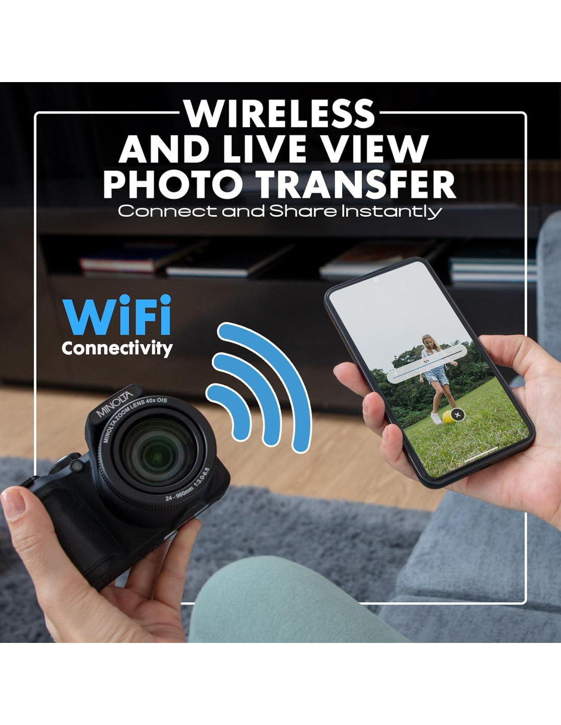 - COMPARTICIÓN WIFI CON SOPORTE DE APLICACIÓN INTELIGENTE: Conéctate a tu smartphone o tablet a través del Wi-Fi incorporado y transfiere fotos o videos al instante. Usa la aplicación para disparo remoto, perfecto para fotos grupales y creación de contenido sobre la marcha.