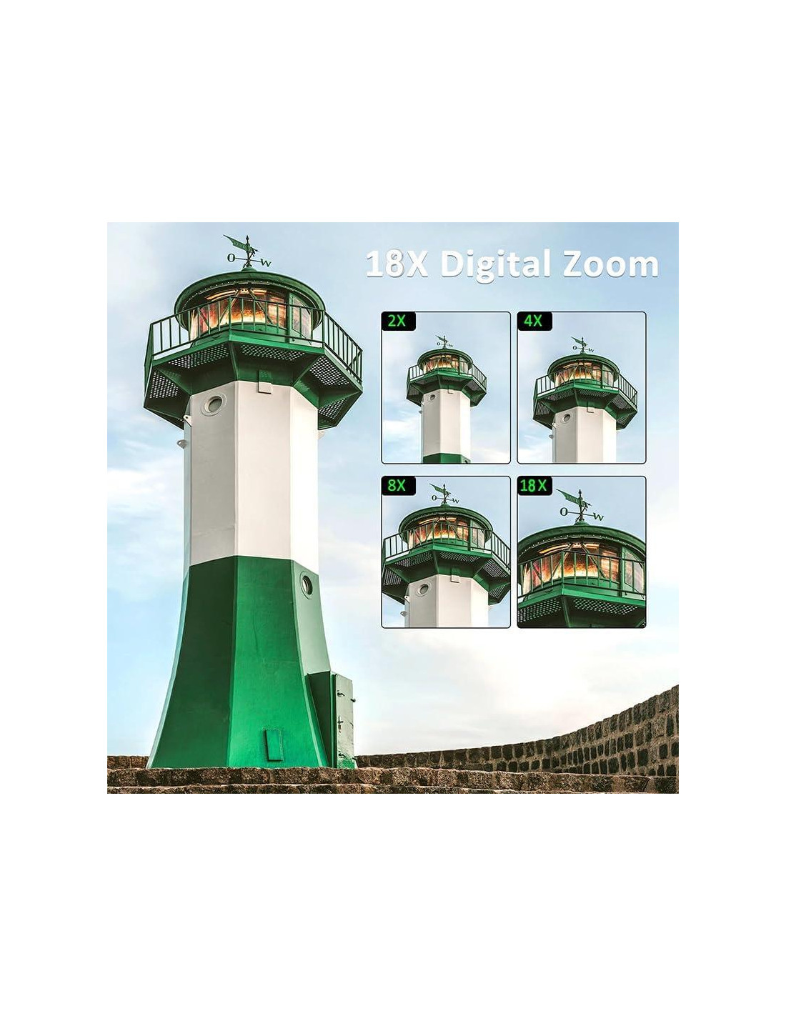 - [Cámara de 18X Zoom para Fotografía] La cámara digital cuenta con una pantalla de 3 pulgadas y zoom digital de 18X. Al tomar fotos o grabar videos, puedes usar el botón W/T para acercar o alejar, lo que te permite capturar tomas de cerca detalladas o objetos lejanos.