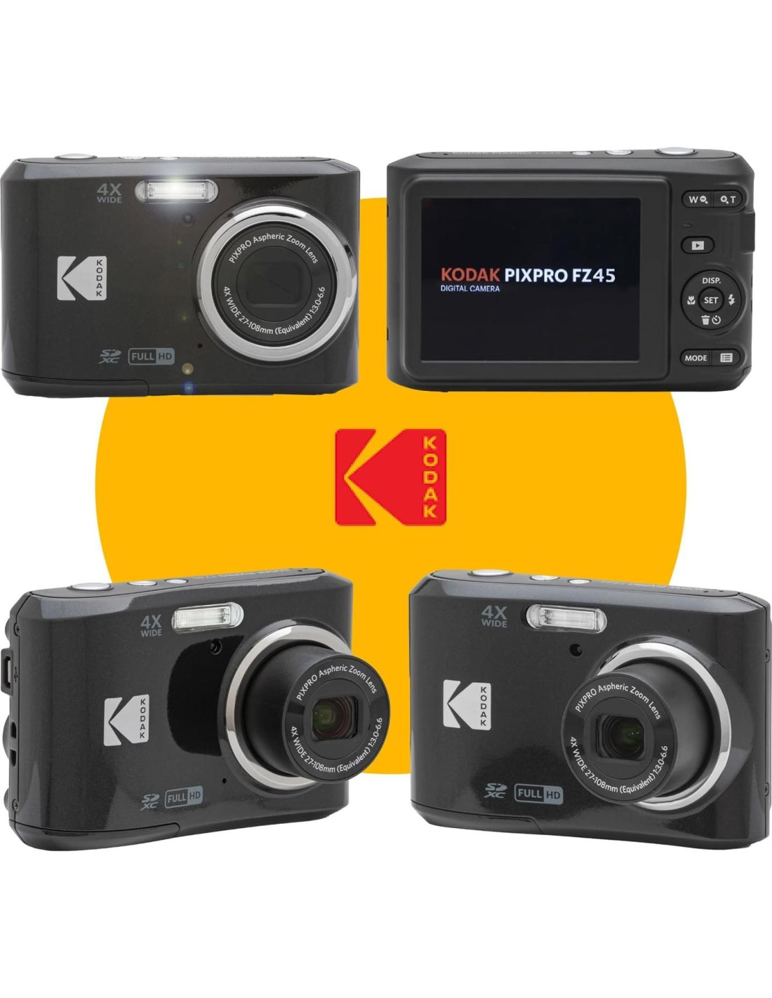 - El Paquete Incluye: Cámara Digital Kodak PIXPRO FZ45 (Negra) + Funda para Cámara Compacta + Tarjeta de Memoria Sandisk 128GB SDXC
