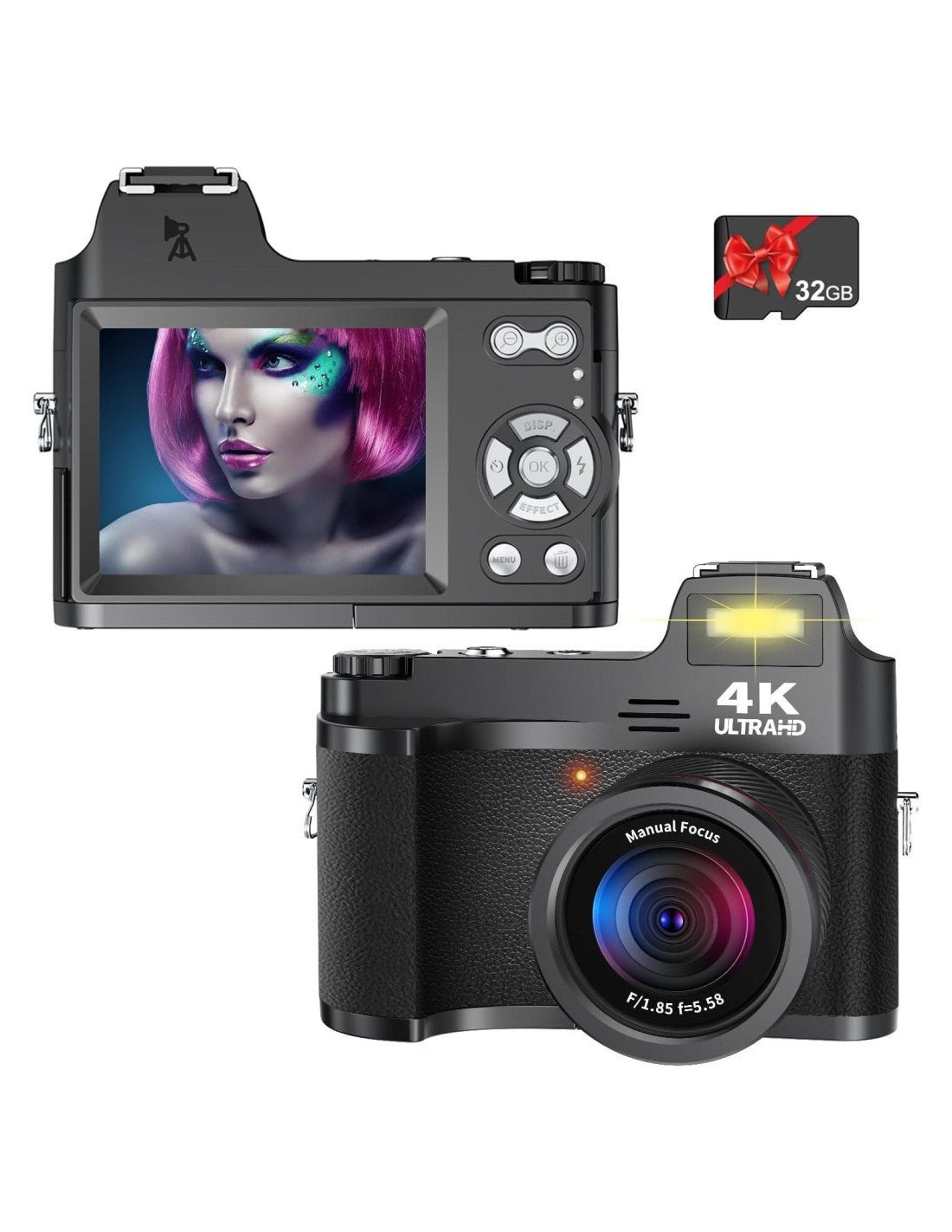 - Cámara Digital 4K con Enfoque Manual Esta cámara 4K tiene función macro, que puede magnificar sujetos cercanos para fotos en primer plano, que muestran la sorpresa del pequeño mundo. Puedes tomar fotos de flores, insectos, pequeños objetos en fotografía de primer plano con esta pequeña cámara. Y también es divertido con la función de enfoque manual para tomar las hermosas escenas panorámicas, ¡ver un mundo grande y amplio!