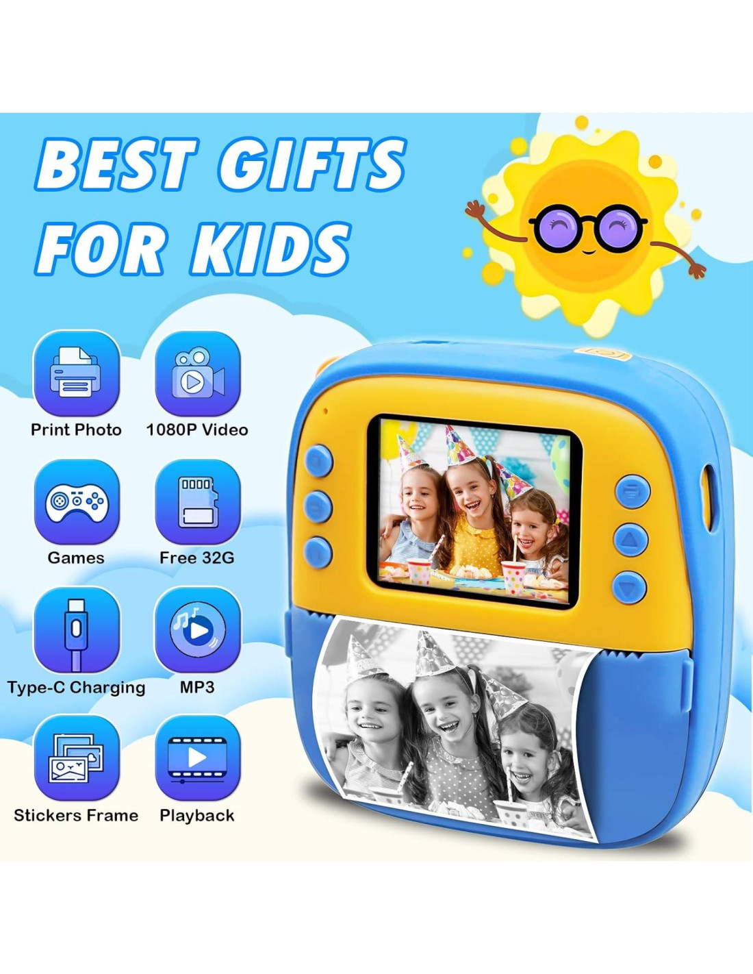 - Cámara Digital Multifuncional para Niños: Esta mini cámara con impresión instantánea, video 1080P, zoom digital de 8X, lapso de tiempo, disparo continuo, juegos, filtros, marco, mp3. Esto puede satisfacer las diferentes necesidades de los niños. Es una buena opción para acompañar a los niños a crecer felices.