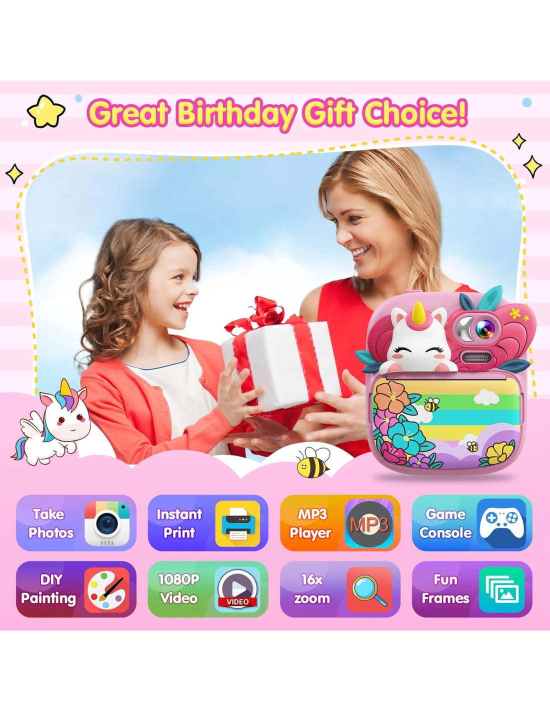 - CÁMARA DE IMPRESIÓN VERSÁTIL: Esta cámara para niñas tiene varias funciones y configuraciones creativas, como fotografía, video, impresión en blanco y negro, música, juegos, reproducción, flash y más. El diseño es compacto y ligero, y los botones son simples de operar, lo que facilita a los niños dominarla. Tus hijos pronto estarán entretenidos y tendrán una infancia feliz.