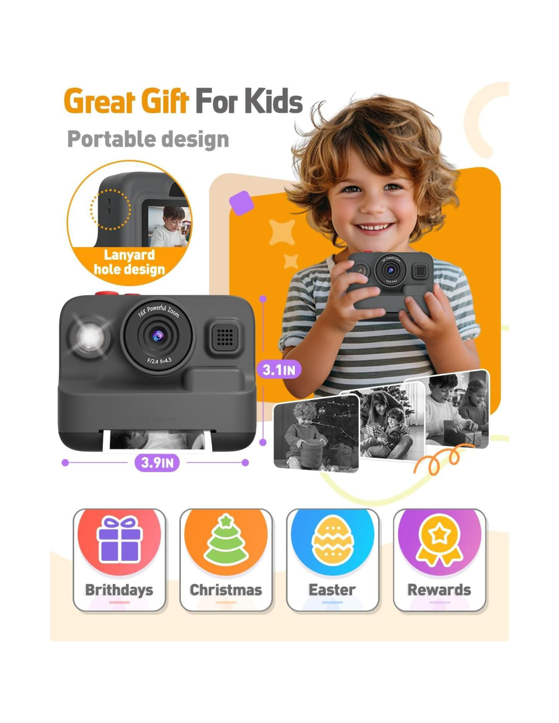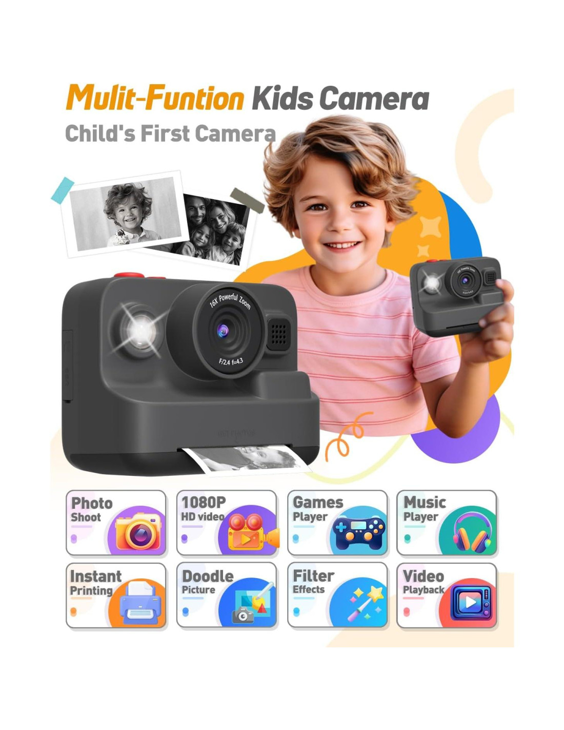 - Función de Impresión Térmica en Blanco y Negro: La cámara instantánea para niños adopta tecnología avanzada de impresión sin tinta, equipada con 3 rollos de papel de impresión térmica (uno de los rollos de papel ya ha sido colocado en la ranura de papel de la cámara), que puede imprimir alrededor de 300 fotos (el papel de impresión se puede reemplazar por uno nuevo cuando se agote), puede configurar automáticamente la consistencia de impresión, soporta impresión sin tarjeta, impresión térmica, impresión instantánea. Deja que los niños tengan su propia cámara para niños, esperando sus preciosos recuerdos de los momentos maravillosos capturados con la cámara instantánea para niños.