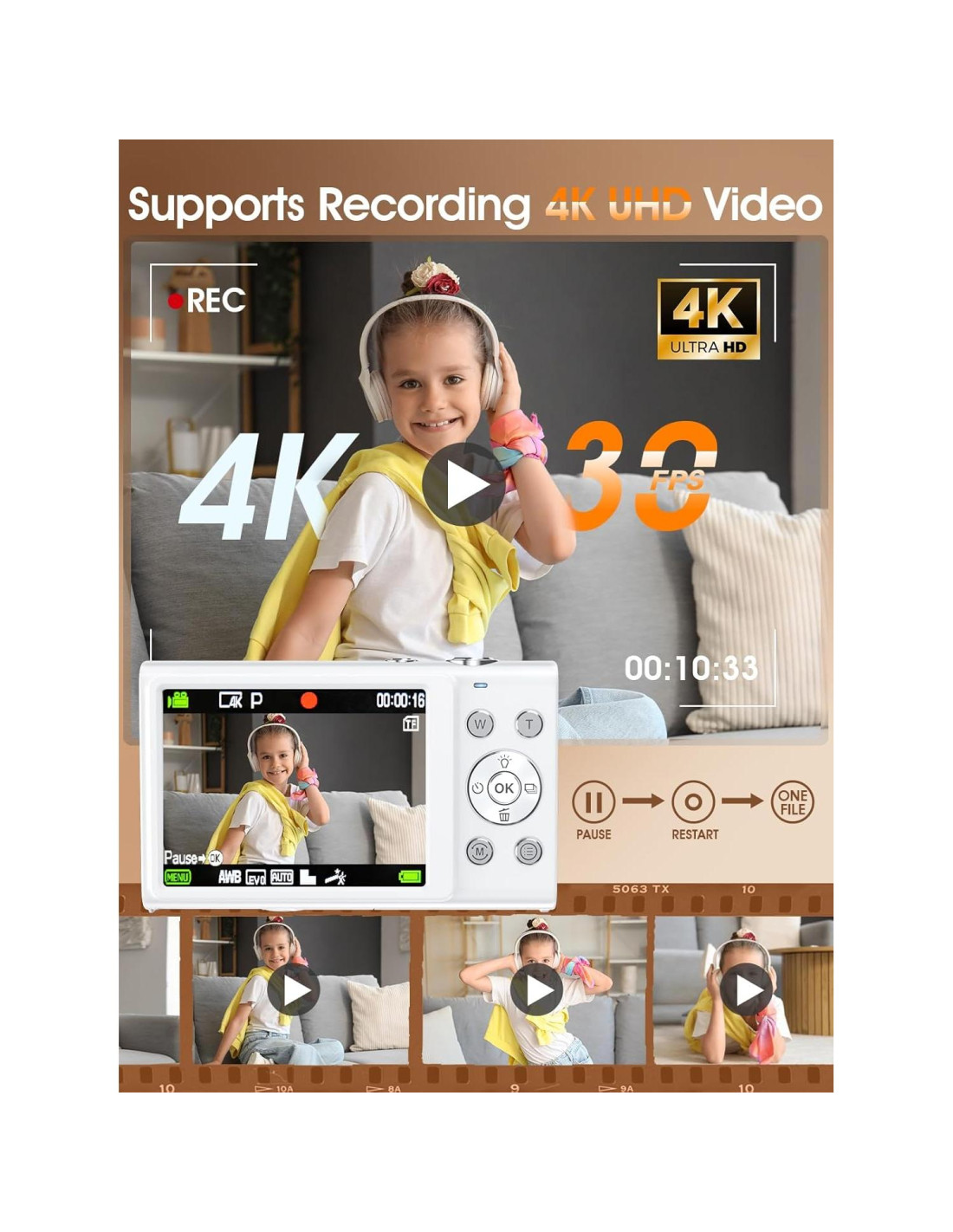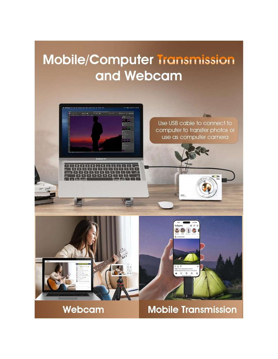 - 4K UHD Video y Captura de Foto de 48MP, Graba Cada Momento Especial Esta cámara digital compacta cuenta con el último sistema de sensor CMOS, soportando grabación de video 4K y fotos de alta resolución de 48MP. Ya sea que estés explorando la belleza de la naturaleza o capturando la alegría de una reunión familiar, esta cámara asegura que puedas documentar claramente cada momento importante con un detalle impresionante.