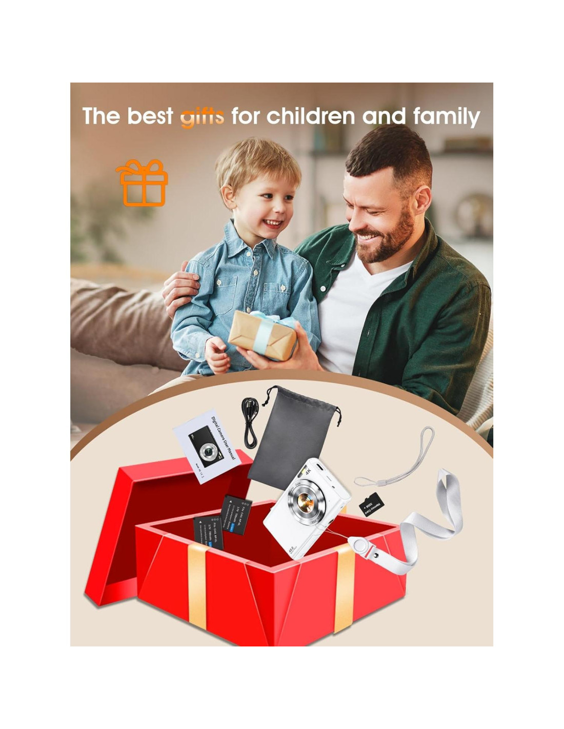 - Compacta y Amigable para Viajar con Accesorios Completos Esta cámara digital pequeña y portátil es perfecta para viajar o uso diario, encajando fácilmente en tu bolso o bolsillo. Viene con una tarjeta SD de 32GB, 2 baterías y un cable de carga Tipo-C, lista para usar en cualquier momento. La pantalla IPS de 2.8 pulgadas proporciona una interfaz intuitiva, para que puedas ver, editar y compartir tus fotos rápidamente. Ya sea como un regalo para amigos y familiares o como un compañero para documentar tu propia vida, esta cámara es la elección ideal.