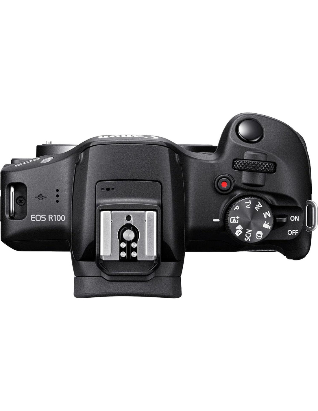 Cámara Sin Espejo Canon EOS R100 con Kit de Lente Canon RF-S 18-45mm f/4.5-6.3 is STM con Bolsa de Hombro Canon, Negra