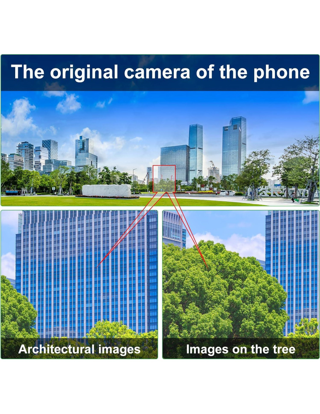 - [Capacidad de Enfoque Individual] : lente de cámara para teléfono con ajuste exacto para el objetivo, con el anillo de enfoque significa que puedes usarlo para ajustar la nitidez del sujeto de la toma para cambiar el campo de visión de la imagen capturada, lo que mejora enormemente la calidad de la imagen. (Nota: Es mejor quitar la funda de tu teléfono para tomar mejores fotos.