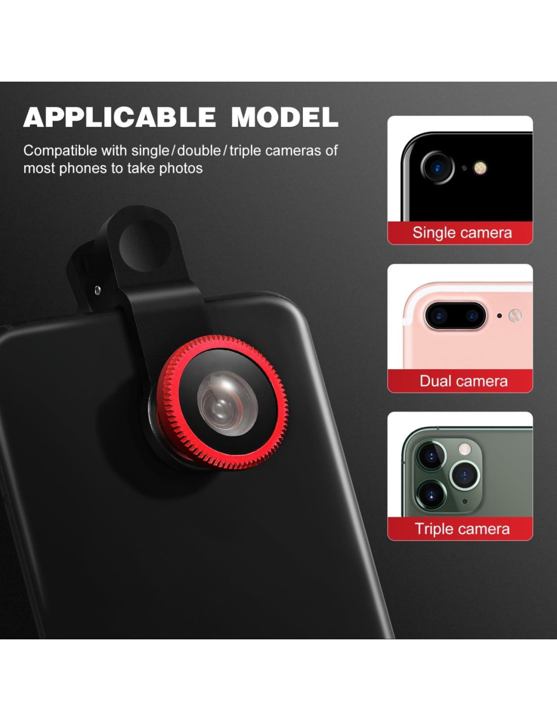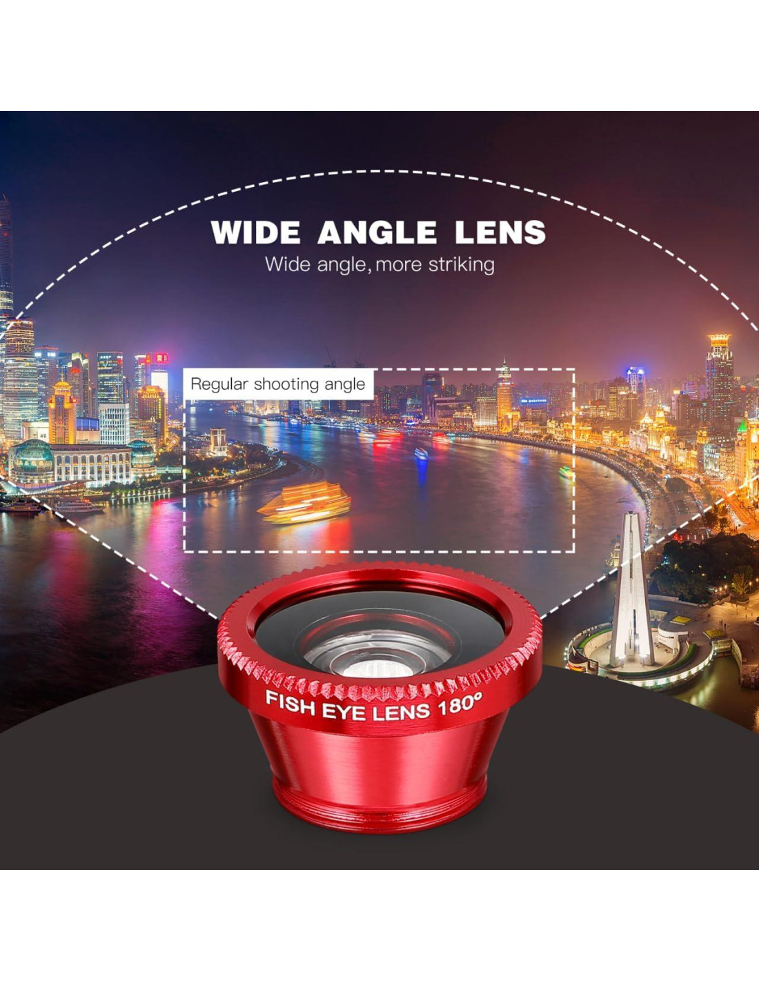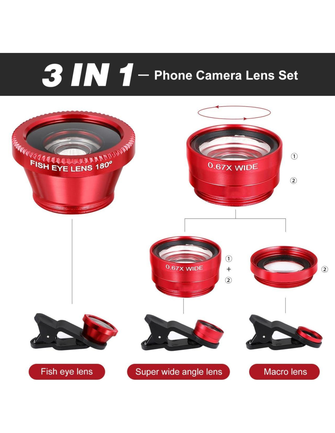 Descripción Este lente de cámara para teléfono 3 en 1 puede satisfacer tu demanda en fotografía. Nuestro lente de cámara es fácil de operar y profesional para que tomes mejores fotografías y captures la belleza instantánea en tu teléfono celular. Tiene un Lente Gran Angular Super, un Lente Macro y un lente ojo de pez que están unidos. Hecho de aleación de aluminio de alta calidad, se ve moderno y elegante, y es resistente al aceite y al agua. Fácil de secar. Características - Color: Rojo - Material: Aleación de Aluminio y Vidrio - Tamaño: 11 x 6 x 2 cm - Interfaz: interfaz universal de 52 mm - Lente Profesional de Alta Definición reduce el destello de vidrio, la distorsión y el ghosting. - Tiene un Lente Gran Angular Super, un Lente Macro y un lente ojo de pez que están unidos. - El Lente Gran Angular Super puede expandir enormemente el campo de visión, te permite capturar un paisaje mucho más grande, no tienes que estar limitado a un pequeño campo de visión. - El Lente Macro te permite capturar todas las complejidades y detalles con enfoque de precisión para imágenes nítidas cada vez. - Fácil de instalar. El clip facilita quitarlo y colocarlo en el dispositivo, y no dejará ningún daño en tu teléfono o tableta. - Hecho de aleación de aluminio de alta calidad, se ve moderno y elegante, y es resistente al aceite y al agua. Fácil de secar. Paquete Incluyendo 1 x Lente de Cámara para Teléfono