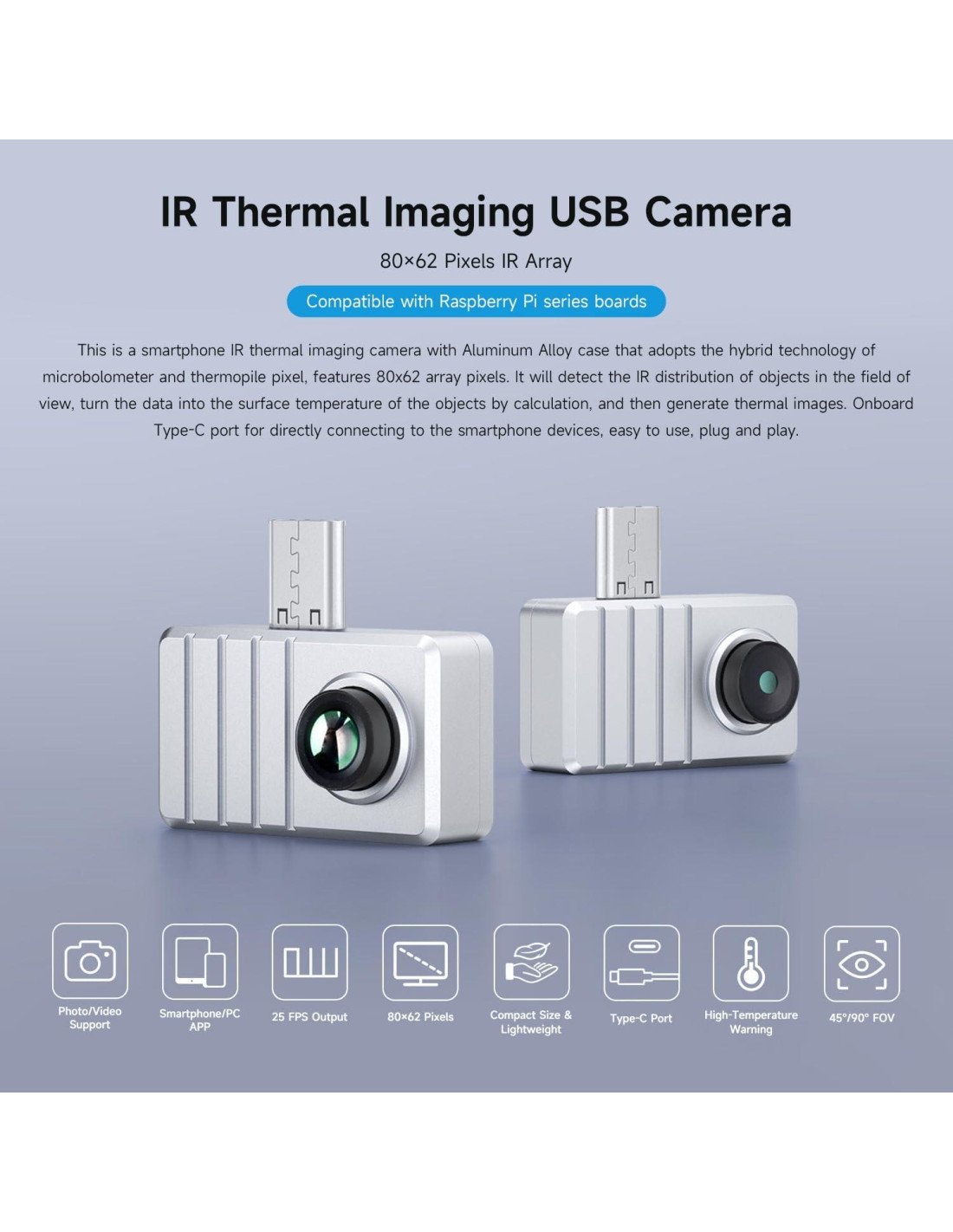 - Esta es una cámara térmica infrarroja para smartphone con caja de aleación de aluminio que adopta la tecnología híbrida de microbolómetro y píxel de termopila, cuenta con una matriz de 80x62 píxeles.