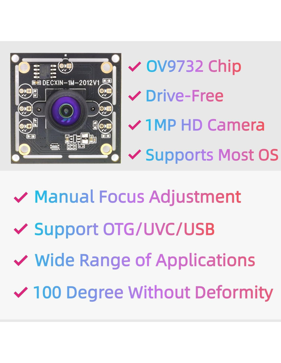 - [Rendimiento Estable] El Módulo de Cámara USB está equipado con un chip fotosensible de alta definición ov9732 para un rendimiento estable y imágenes más claras