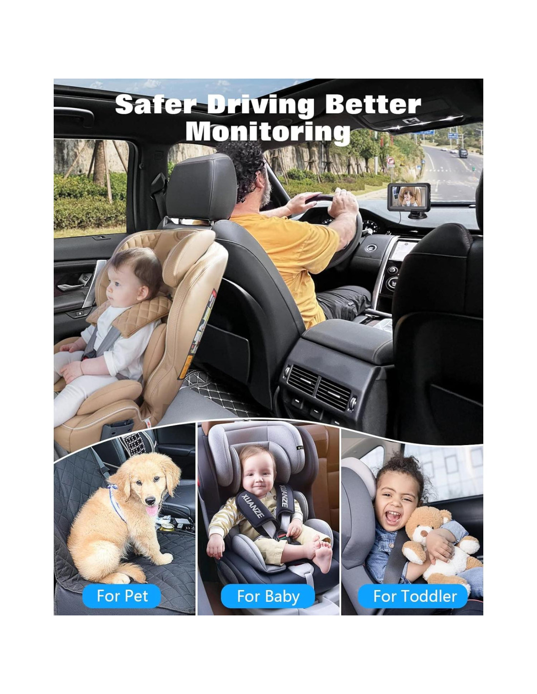Con una interfaz rotatable de 360, puedes ajustar la cámara para bebé del coche a la mejor posición de vista a voluntad. Resolviendo el problema del campo de visión limitado del espejo tradicional, no tienes que ajustar constantemente el espejo retrovisor. Ventosa de goma adhesiva que asegura un agarre firme, previniendo cualquier sacudida o movimiento incluso al conducir por caminos irregulares o bacheados. Con un generoso ángulo de visión de 150, mantente alejado de perder momentos clave en el desarrollo de tu bebé mientras mantienes una conducción segura. Cámara para bebé de 4.3" (10.9 cm) para coche. Espejo para bebé en coche. Espejo para bebé en coche con LED. Termómetro digital.