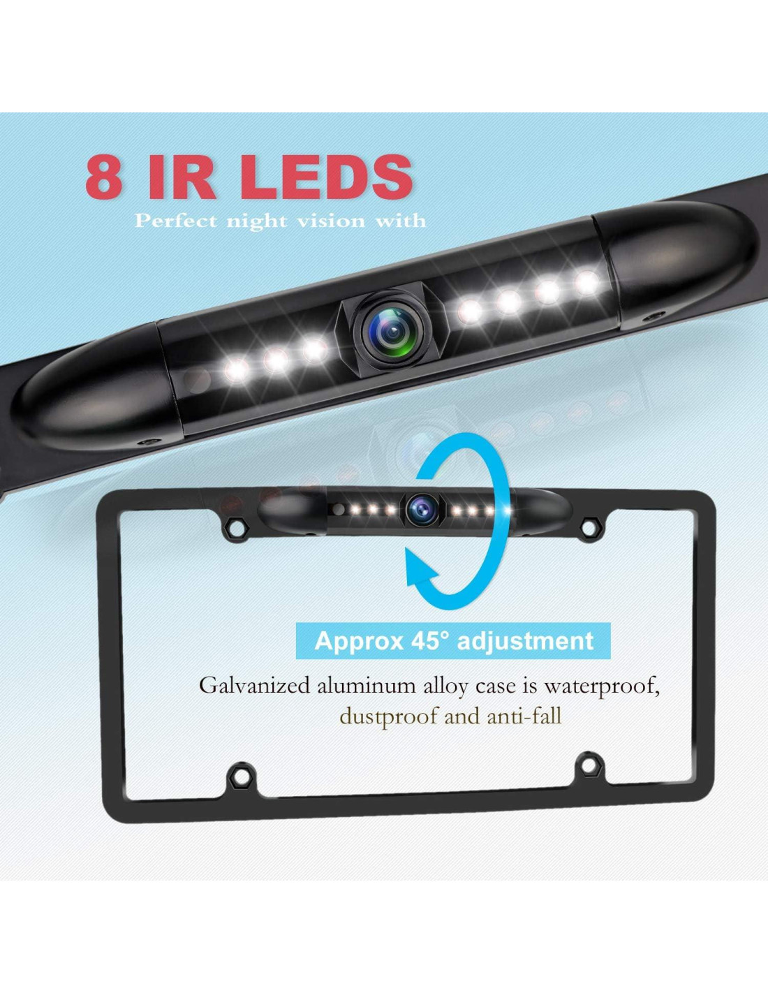 - Cámara HD de coche visión nocturna: 7 LEDs blancos para visión nocturna y excelente rendimiento de 0lux a F2.0. Usamos un chip 3089 de alta definición importado para que tenga un excelente rendimiento visual. En condiciones de iluminación completa, se presenta una imagen en color de alta definición y también es muy clara en total oscuridad.