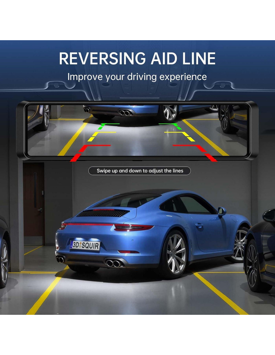 - Pantalla Táctil IPS de 12 Pulgadas y Pantalla Antirreflejo: La pantalla táctil IPS ultra clara de 12 pulgadas asegura una operación suave y receptiva. Diseñada como una cámara de espejo retrovisor de pantalla completa, se adapta perfectamente al espejo de tu auto. La tecnología antirreflejo minimiza la distorsión de los faros, mejorando la visibilidad y seguridad nocturna.