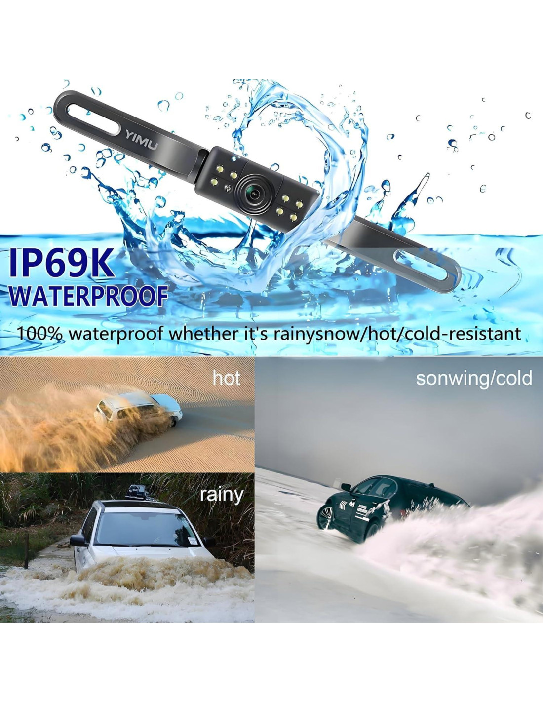 - IMPERMEABLE: La cámara de respaldo YIMU para reversa de automóvil es impermeable IP69K y a prueba de golpes, con una clasificación de impermeabilidad IP69K. La cámara de respaldo para camiones nunca se empañará ni se mojará, incluso durante tormentas o en días lluviosos. El diseño profesional a prueba de golpes de la cámara de vista trasera para automóvil asegura que las cámaras de respaldo funcionen de manera segura para su vehículo.