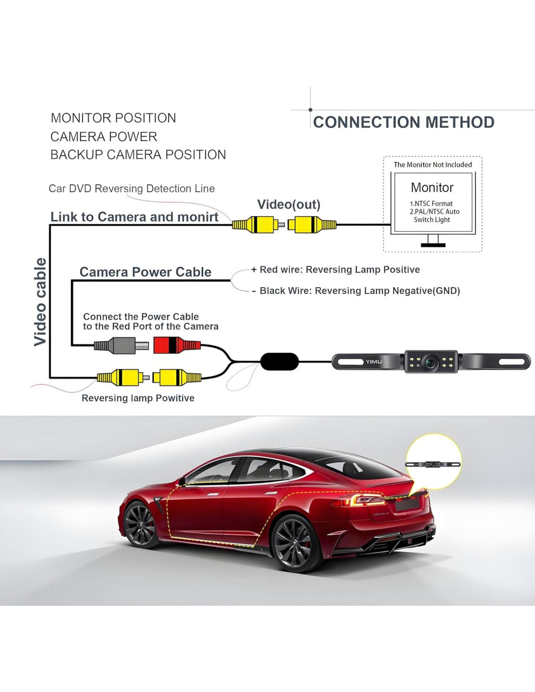 - Fácil de Instalar: La cámara de respaldo YIMU para automóviles es fácil de instalar, funciona con cualquier alimentación de 12-24V DC, solo necesita conectar la alimentación de la cámara de reversa a la luz de reversa, luego conectar las cámaras de respaldo a los reproductores de DVD de su automóvil, radios, monitores o pantallas mediante un cable AV de 26 pies. La cámara de placa de matrícula incluye un cable de video RCA de 26 pies.