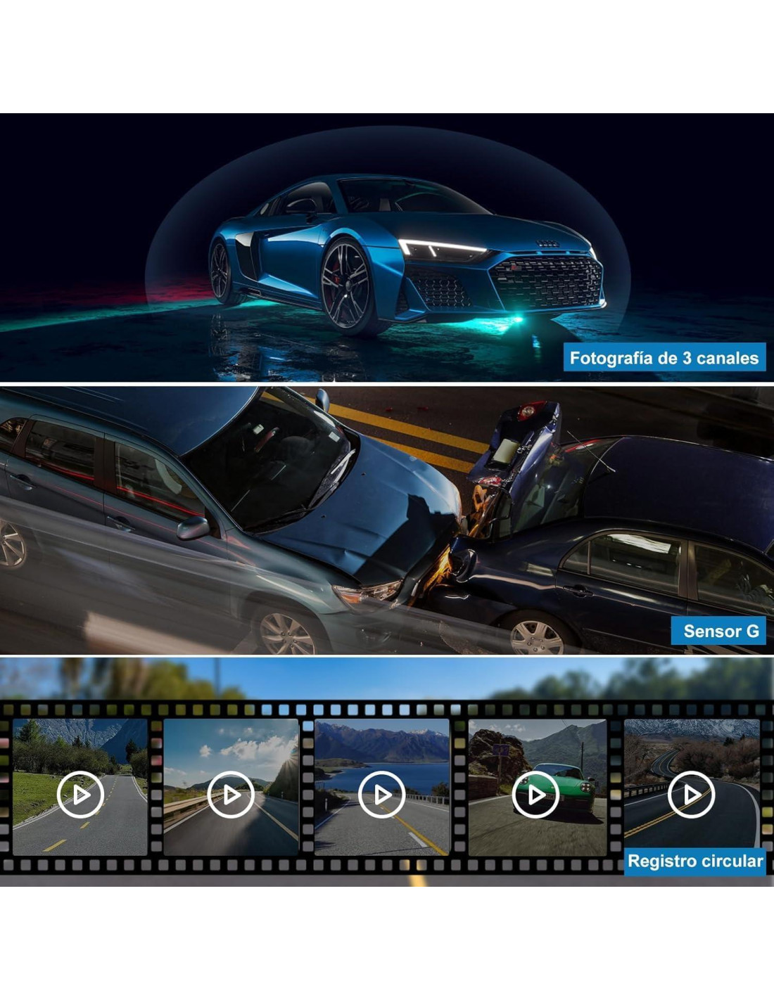 - [Monitoreo de estacionamiento 24H y Time Lapse] La cámara de tablero del automóvil cambia automáticamente al modo de estacionamiento cuando su automóvil está estacionado, asegurando vigilancia constante. El modo Time Lapse 24H graba continuamente con un consumo mínimo de energía y una baja tasa de fotogramas, protegiendo su vehículo de robos o vandalismo.