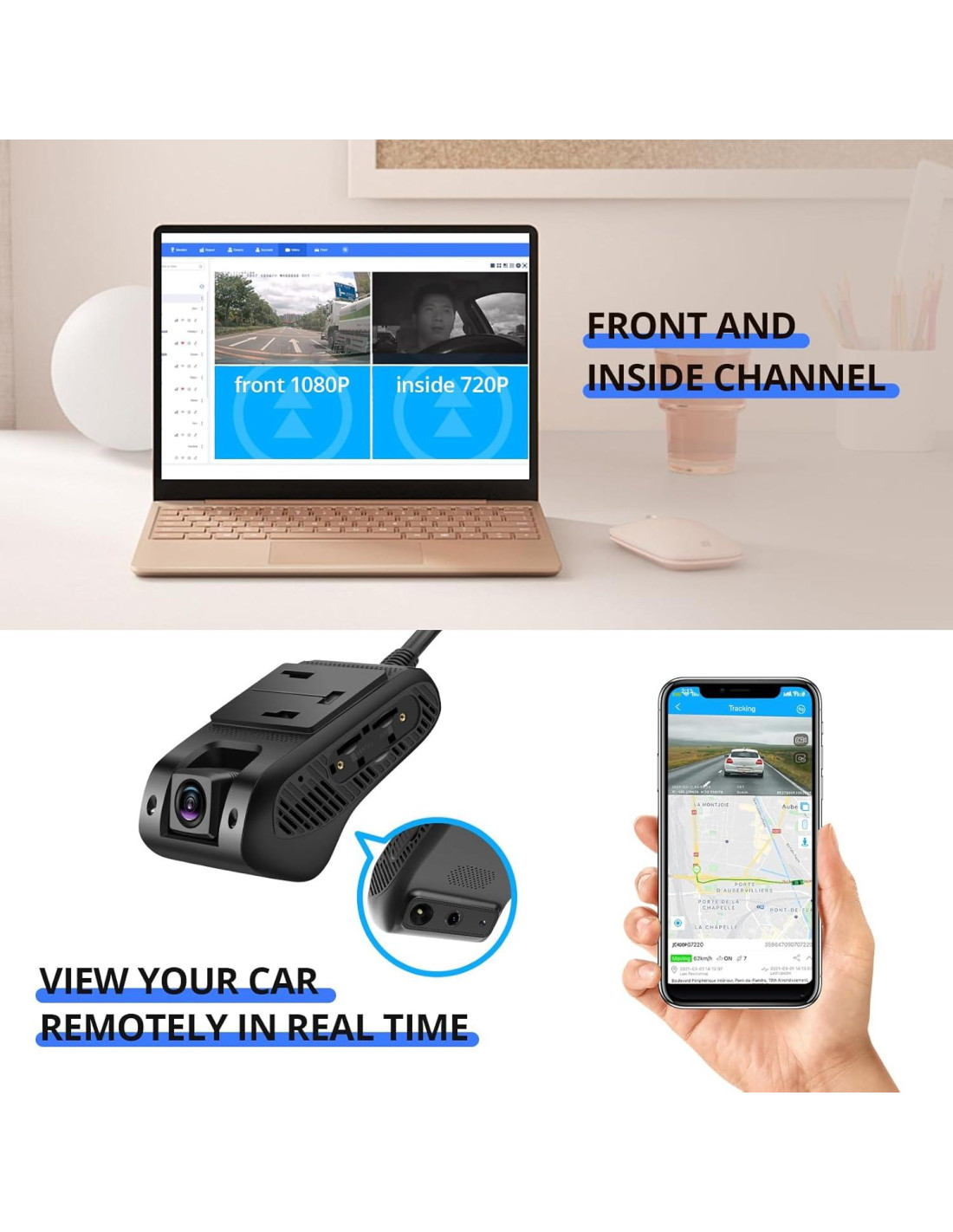- Cámara Doble Canal 1080P+720P- Esta cámara de automóvil está equipada con una cámara frontal de 1080P con un ángulo de visión amplio de 145 y una cámara interior de 720P con un ángulo de visión amplio de 140 con versión nocturna.