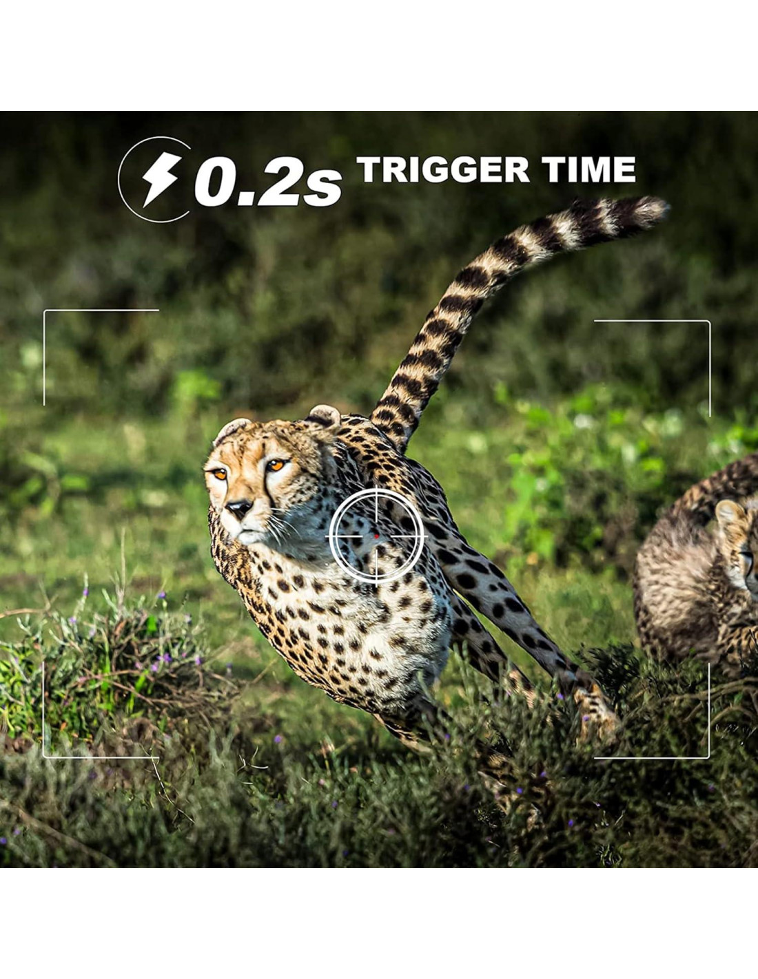 - INCREÍBLE TIEMPO DE DISPARO DE 0.2 S Y TARJETA DE 32G - La cámara de juego puede tomar fotos en 0.2 s al detectar movimiento, y puedes configurar 1/2/3/10 disparos para asegurar la captura rápida de objetos en movimiento rápido. La tarjeta de 32GB proporciona un gran espacio de almacenamiento para capturar más momentos emocionantes.