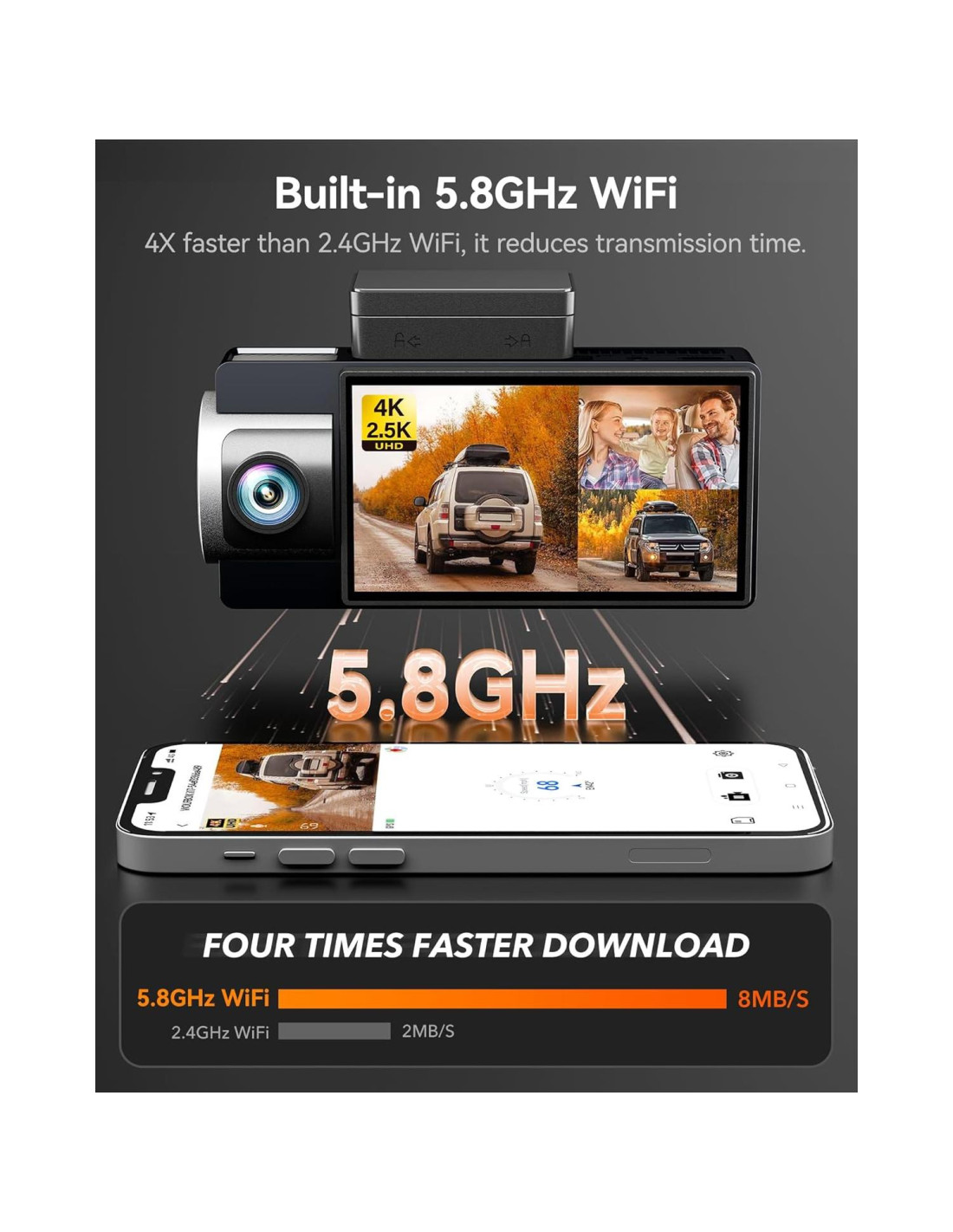 - [ Cámara de Salpicadero Doble 4K+2.5K ] La cámara de salpicadero WOLFBOX i17 para automóviles proporciona excelente calidad de imagen con una cámara frontal de 3840x2160@30fps y una cámara de cabina de 2560x1440@30fps. Puedes configurarla en modo frontal e interior 4K+2.5K, o en modo de doble canal frontal y trasero 4K+1080P según tus necesidades. Obtén calidad de video ultra suave en cualquier modo de grabación para asegurar una conducción segura