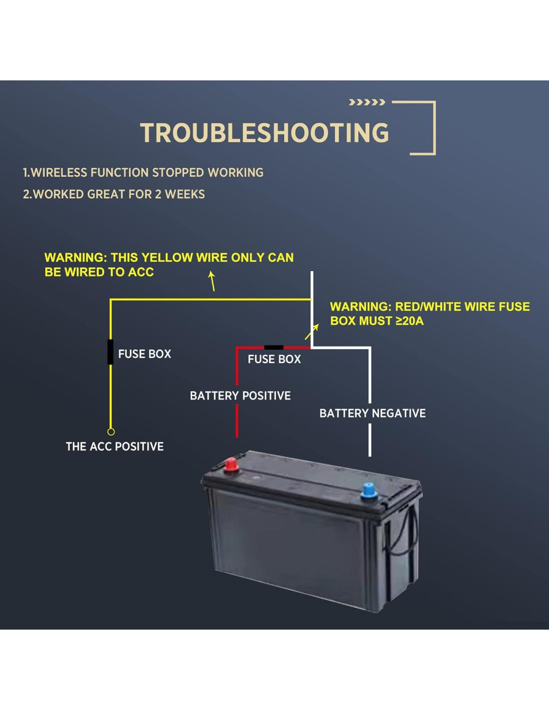 - Instalación CAJA DE FUSIBLES DEBE>=20A [Encendido automático con la ignición de su vehículo y fácil de instalar] - Energía suministrada directamente por su automóvil. Grabación de arranque predeterminada, sin segundos perdidos. Diseño de seguridad avanzado sin riesgo de explosión de batería y con una vida útil mucho más larga; Almacenamiento segmentado inteligente, grabación en bucle sin interrupciones, nunca disco lleno. Sistema de cámara cableada sin problemas de señal. Un cable de alimentación soporta todo el sistema. La cámara solo necesita conectar el cable de extensión desde el monitor.