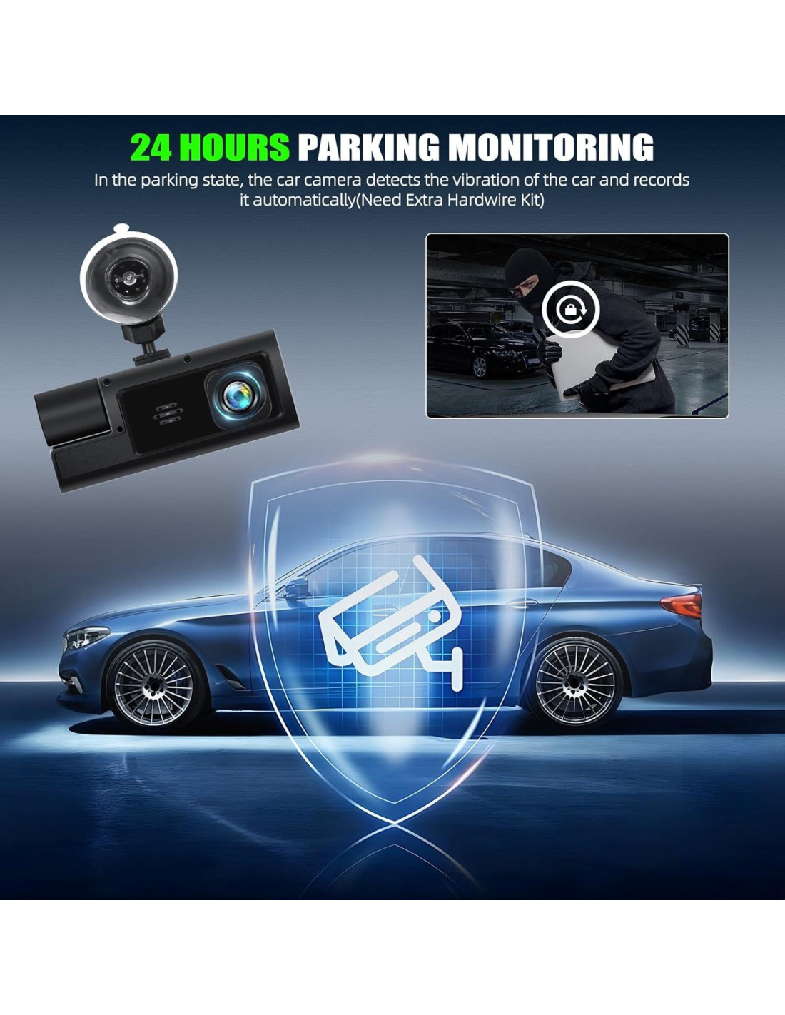 - [Cámara Dash de 3 Canales] La cámara dash está equipada con una cámara interior de 150 y una cámara trasera de 120. La cámara delantera 1080P puede proporcionar videos claros y nítidos, capturando pequeños detalles cuando se ve involucrada en una colisión. La cámara trasera siempre te mantiene informado del estado de la carretera detrás y te protege contra chocar con otro auto al estacionar. Para los conductores de transporte compartido, la cámara interior proporciona protección adicional mientras acompaña a los clientes.