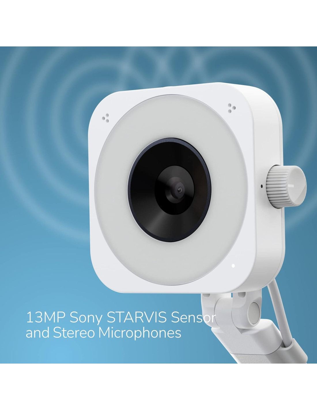 - [Anillo de Luz LED Sin Escalones y Micrófonos Estéreo] La W1 está equipada con 12 potentes luces LED para superar las condiciones de poca luz (por ejemplo, al usar el proyector). Ajusta el brillo deseado con el botón de atenuación sin escalones. Los micrófonos duales graban audio estéreo para enseñanza en línea, presentaciones y seminarios web.