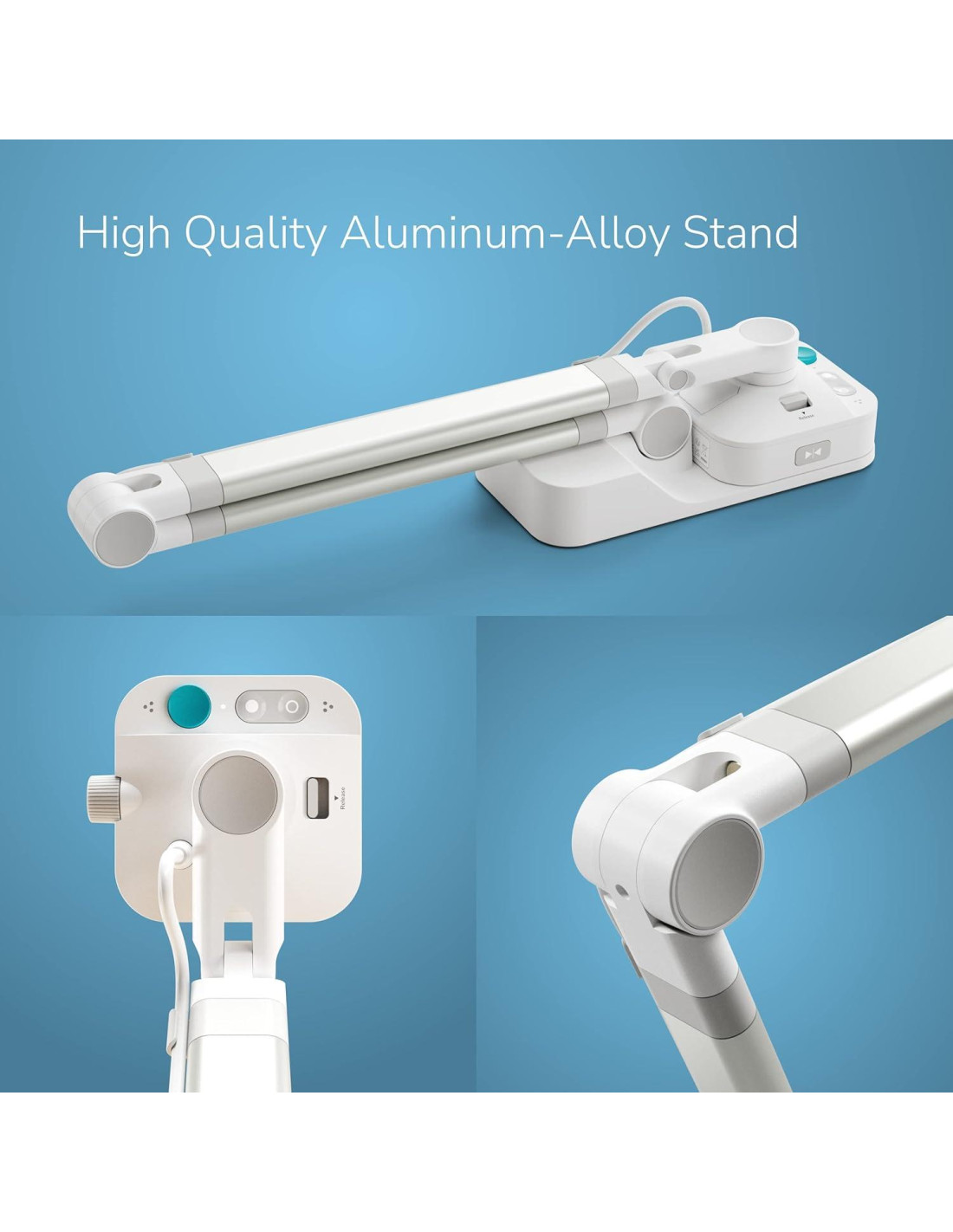 - [Diseñada para un Uso Sin Esfuerzo y Durabilidad] Construida con componentes de alta calidad y con un soporte de aleación de aluminio y base pesada de metal, la W1 está más que lista para el desafío del uso diario en el aula. Las bisagras de la W1 han sido probadas y demostradas capaces de más de 10,000 rotaciones. El brazo multiarticulado y la base mínima de la cámara documental W1 te permiten capturar tus materiales sin esfuerzo desde cualquier ángulo.