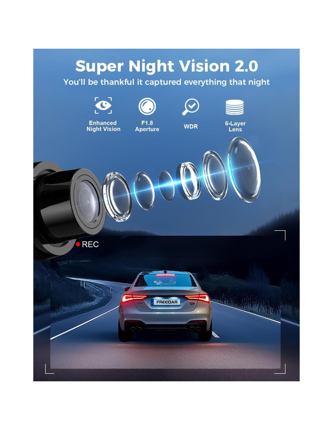 - 4K VE LO QUE OTROS PIERDEN - La cámara de auto FREEXAR D4 es la primera cámara dash de 4 canales con una cámara frontal de 4K - ofreciendo imágenes nítidas que capturan claramente matrículas, señales de tráfico y cada detalle crítico. Incluso a velocidades de autopista, 4K se mantiene. Otros canales graban en 1080P. Y cuando se trata de seguros o tribunales, las imágenes en 4K hablan más que las palabras.
