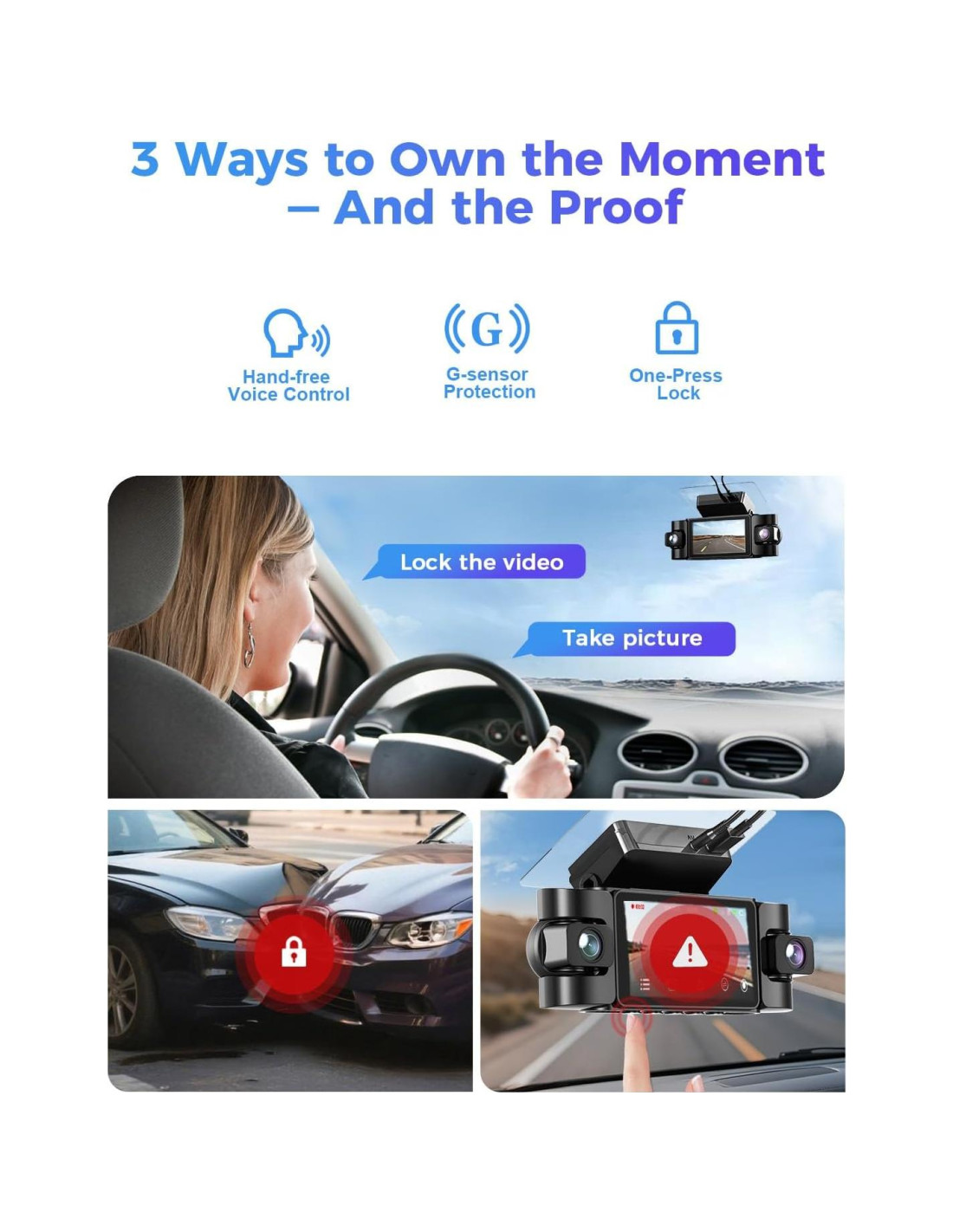 - 3 MANERAS DE PROTEGER LOS MOMENTOS QUE IMPORTAN - Mantente listo con 3 formas inteligentes de asegurar momentos clave: Bloqueo G-Sensor: Guarda automáticamente el video cuando se detecta una colisión. Control por voz: Solo di 'Bloquea el video' para proteger un clip al instante. Bloqueo con un toque: Guarda rápidamente durante eventos repentinos. Además, el registro GPS graba tu velocidad, tiempo y ubicación, esencial para asistencia en carretera y reclamaciones de seguros. Las cámaras dash FREEXAR protegen lo que importa para que puedas concentrarte en la carretera y conducir libremente.