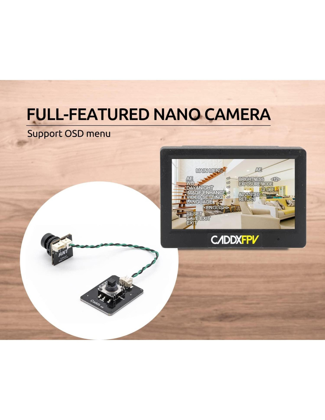 - La cámara FPV Caddx ANT Micro presenta tecnología de imagen mejorada con un sensor CMOS de 1/3", ofreciendo 1200TVL nítido para drones de carreras RC.
