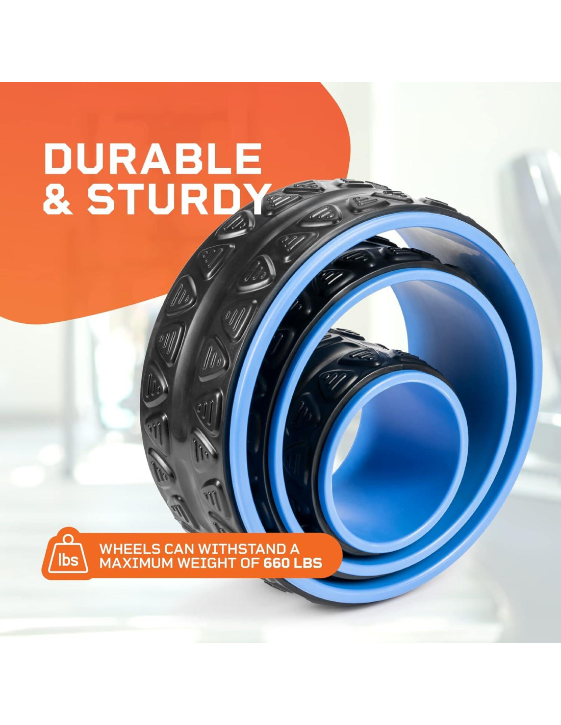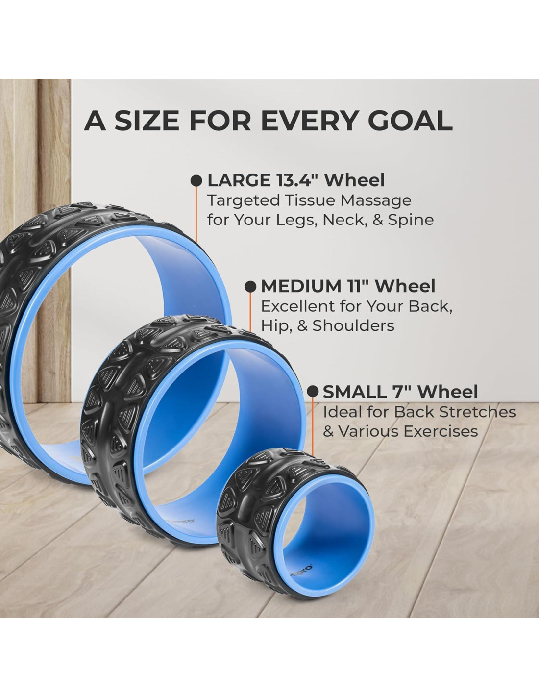 - TRES TAMAÑOS PRÁCTICOS: Apoya y mejora tu práctica con la rueda de yoga Swirl pequeña, mediana y grande para el dolor de espalda y estiramiento. Usa la rueda pequeña como un rodillo de masaje relajante para el alivio del cuello y los hombros.