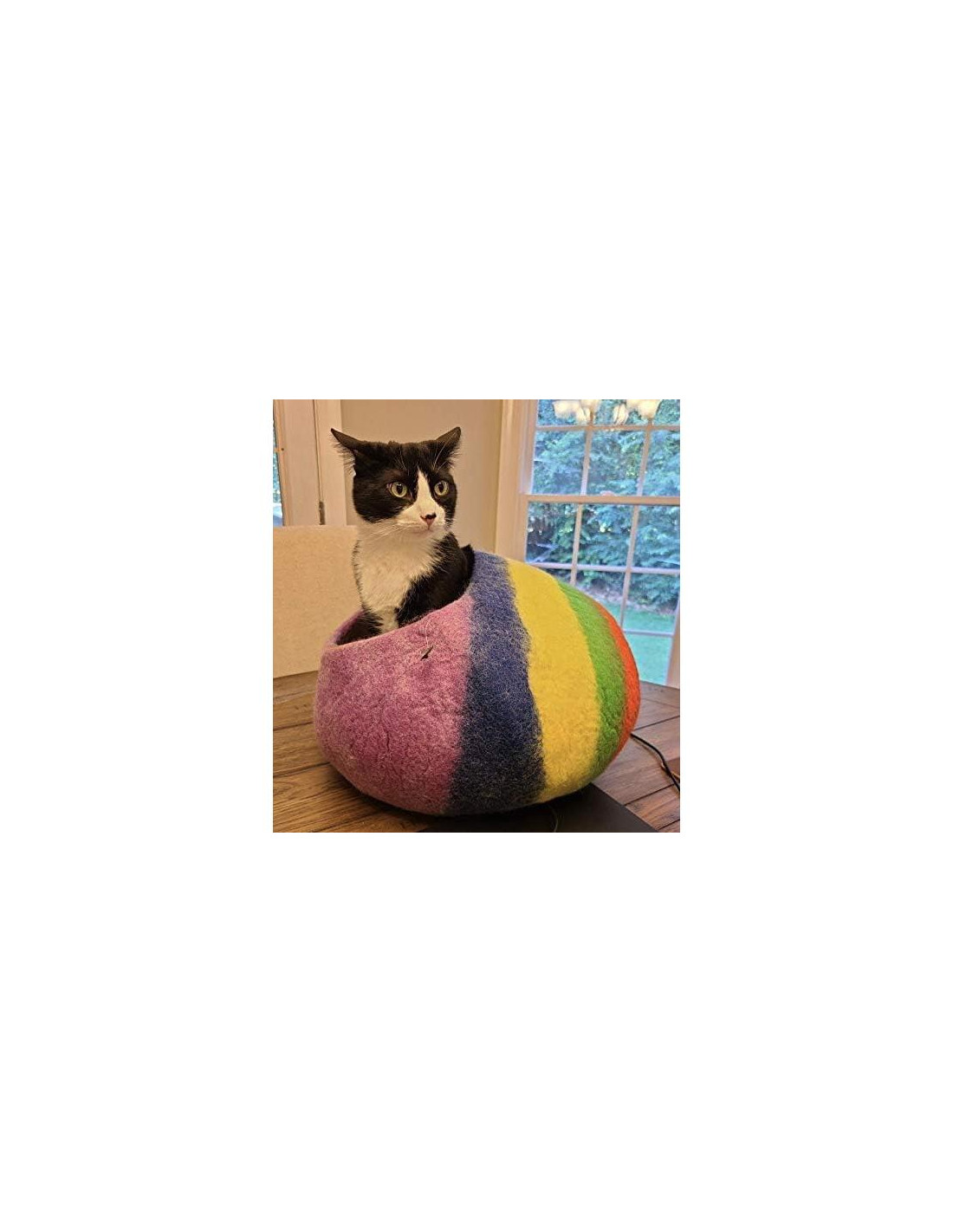 - Todo natural: Hecho utilizando un proceso libre de químicos llamado 'fieltro'. No se utilizó ningún químico agresivo en esta cama para gatos grande.