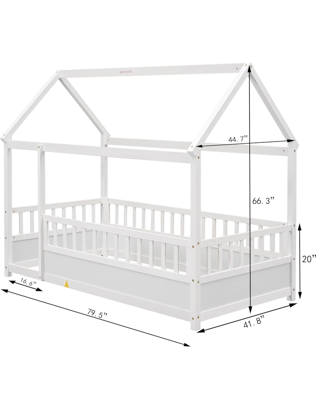 - Seguridad y Calidad Garantizadas Esta cama de piso está principalmente elaborada con pino de alta calidad, su estructura de marco de casa proporciona durabilidad y resistencia duradera. La cama está construida con una estructura firmemente asegurada, forjando una fuerte estabilidad que garantiza la seguridad de los usuarios mientras descansan en la cama de piso.