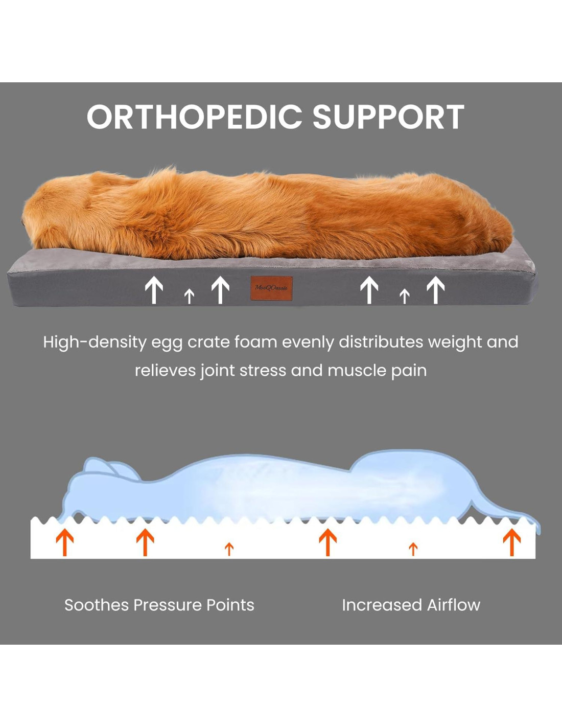 - EL SOPORTE ORTOPÉDICO CUIDA LAS ARTICULACIONES: La cama ortopédica para perros está rellena de espuma de huevo de alta densidad. Proporciona suficiente soporte para la columna, amortiguación y descompresión sin colapsar, confortando efectivamente al perro, brindando soporte para los huesos y áreas articulares, aliviando la presión, el dolor articular y muscular, el dolor corporal, la artritis, etc., protege efectivamente la salud de las articulaciones de su perro y promueve un sueño profundo, perfecta para perros mayores o mascotas que no se sienten bien.