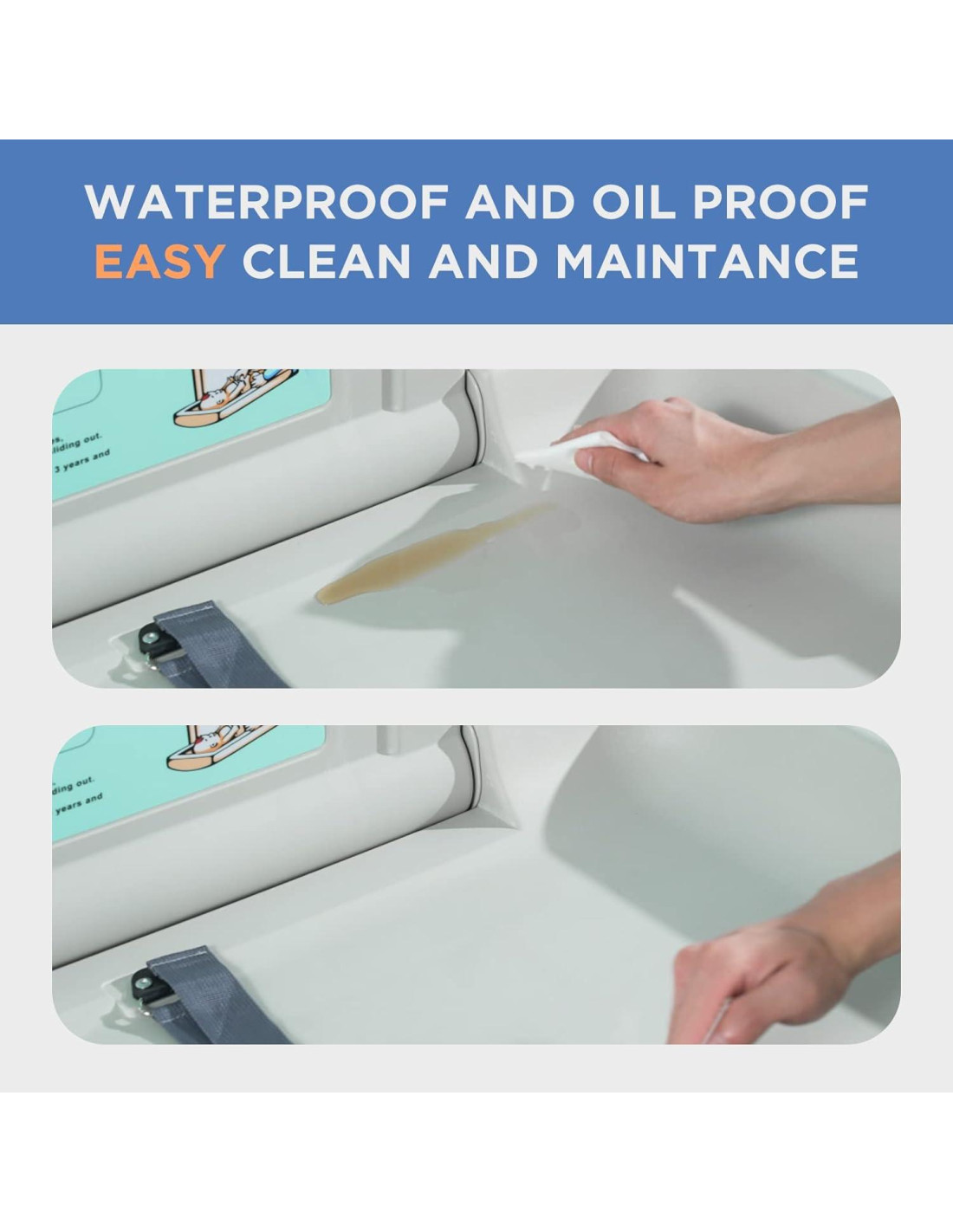 - [Más detalles de seguridad] Bordes redondeados suaves y barandilla lateral más profunda para proteger a los niños de caerse. Correas de seguridad de nylon ajustables y duraderas mantienen a su hijo seguro y protegido durante el cambio.