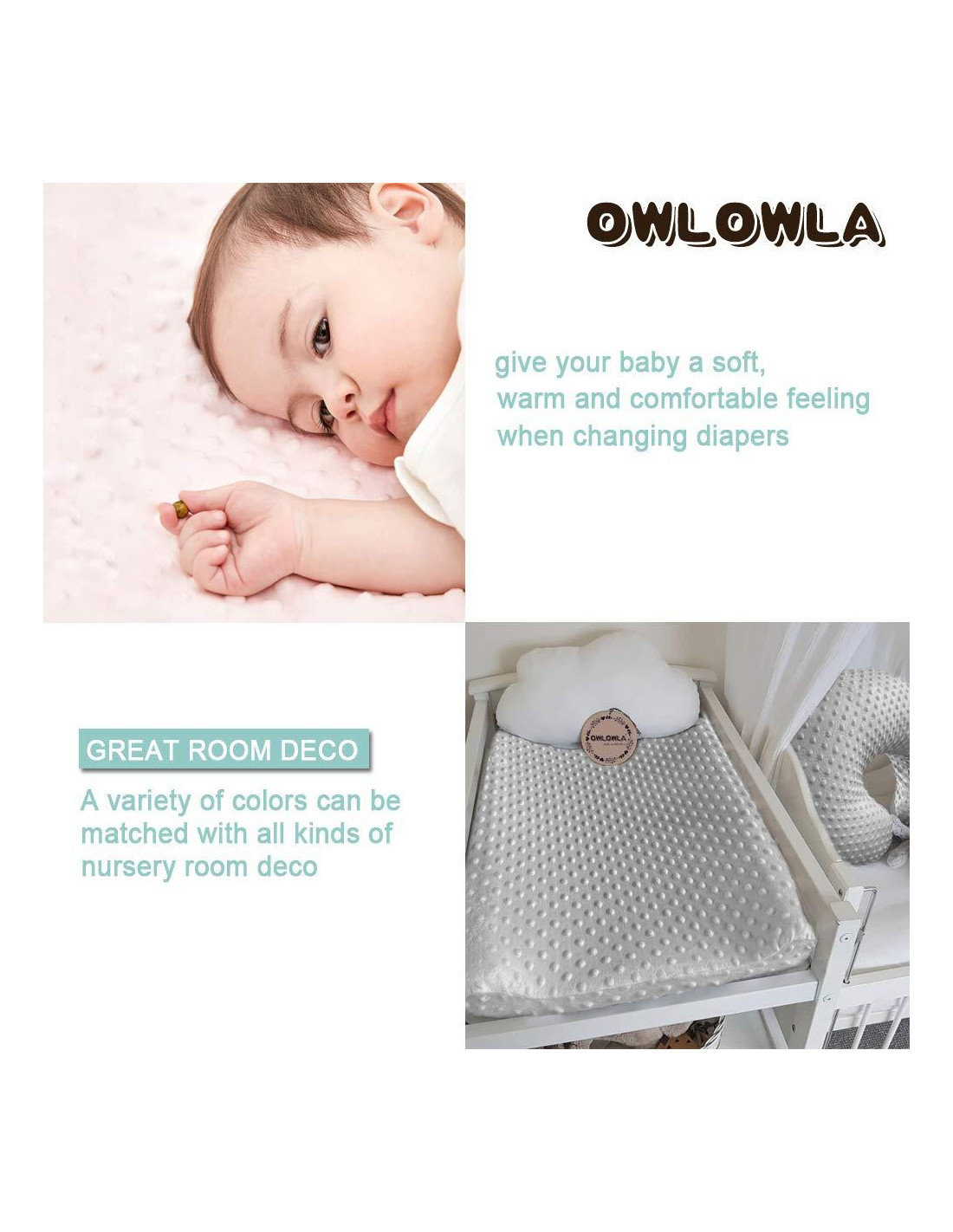 - ULTRA-SUAVE Y TRANSPIRABLE: Esta funda de cambiador Owlowla está hecha de tela minky de alta calidad, que ofrecerá a tu bebé un ambiente súper suave y cómodo