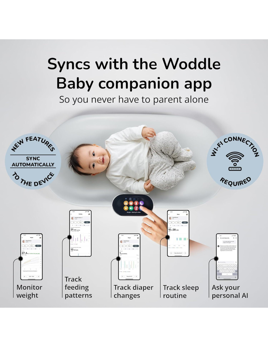 - Características adicionales del producto: Entrenador Parental AI, Balanza Incorporada, Fácil Limpieza, Calentador Integrado, Rastreador Táctil a Bordo