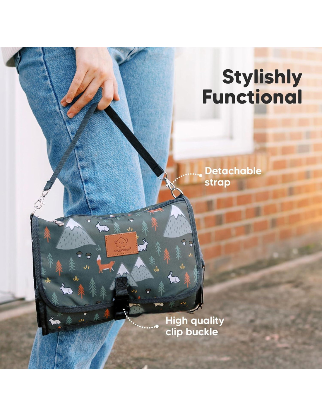 - Mantente con las manos libres - Libera tus manos con nuestra Almohadilla de Cambio de Pañales Ezee. Simplemente clipa los ganchos de metal de manera diferente para llevarla en tu hombro, brazo o mango del cochecito. Cambios de estilo fáciles mientras llevas a tu bebé, usando portabebés o un cochecito.