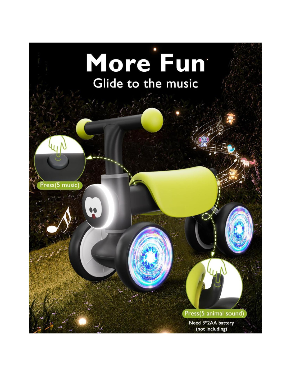 - GRANDES REGALOS PARA BEBÉS: La linda bicicleta de equilibrio con música y luces, adecuada para bebés de 1 año que se deslizan para aprender a caminar. Gran regalo para el primer cumpleaños de niños y niñas, o regalos de Navidad