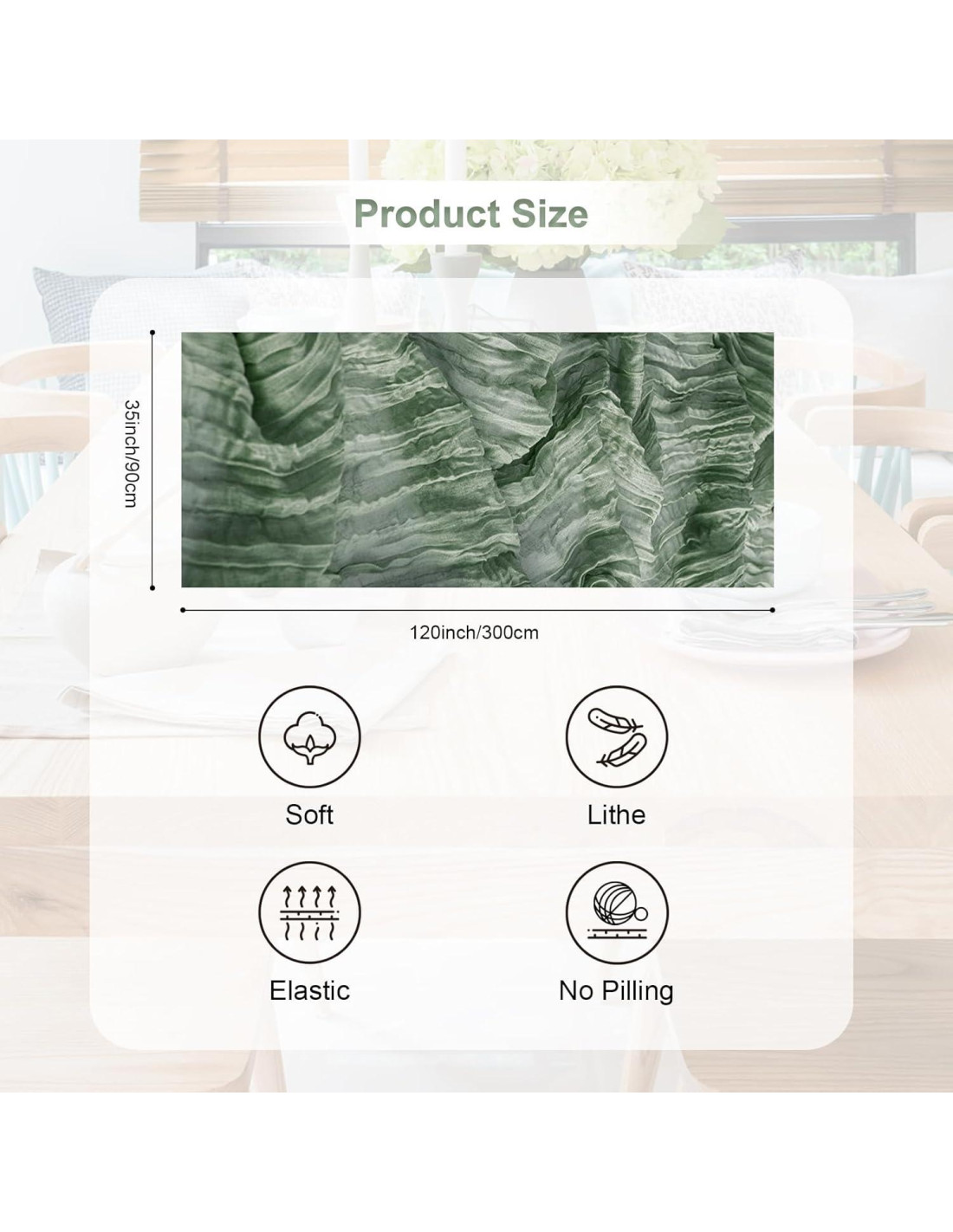 - Materiales Premium: Nuestros caminos de mesa están elaborados con gasa y gasa de alta calidad. El camino de mesa de gasa verde salvia tiene buena suavidad y transpirabilidad, mientras que el camino de mesa de gasa ofrece una textura delicada y elegante. Estos materiales son cuidadosamente seleccionados para garantizar durabilidad y una sensación lujosa, haciendo que tu mesa luzca y se sienta extraordinaria.