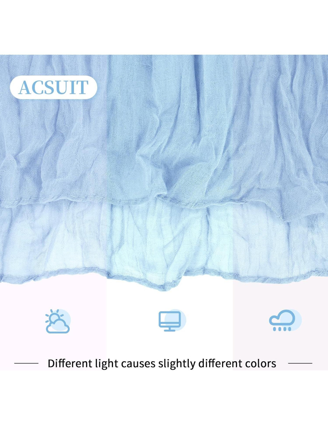 - INCLUYE PAQUETE: 4 Piezas de camino de mesa de gasa color azul bebé de 10 pies (3.05 m) de longitud, cantidad suficiente para banquetes de boda y varias fiestas, el tamaño completamente expandido es de 20" (50.8 cm) de ancho y 120" (304.8 cm) de largo, ligero y fácil de almacenar. Este camino de mesa de gasa se puede colocar sobre la mesa o colgar en el suelo de manera perfecta y elegante, lo que añadirá una atmósfera romántica a tu ocasión