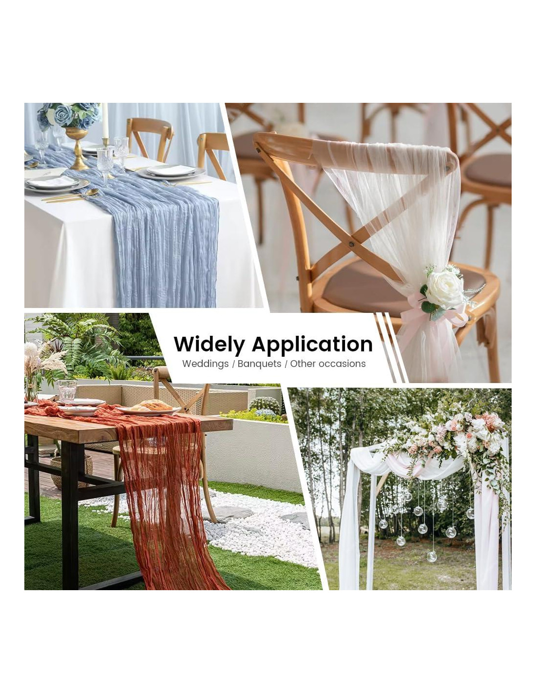 - [Calidad Premium] El caminito de mesa de tela de queso largo está hecho de viscosa y poliéster de alta calidad. El caminito de mesa Boho de gasa es de color blanco y tiene un aspecto vintage con un diseño arrugado. Ligero, suave al tacto, caída natural, sin pelusa, duradero y no se decolora fácilmente.