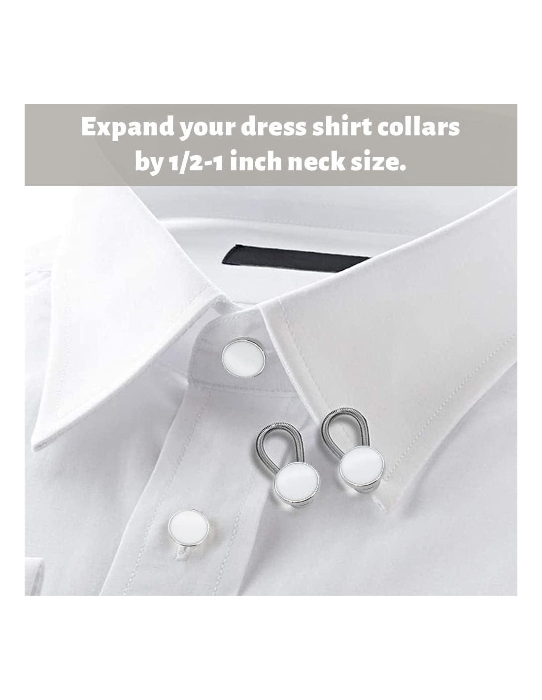 - FÁCIL DE USAR: Simplemente adjunta los extensores de cuello elásticos al botón existente en las camisas para agregar un extra de 1/2-1 pulgada (1.27-2.54 cm) al tamaño del cuello, no se requiere coser, lo que los hace más cómodos de usar, es perfecto para usar con corbata.