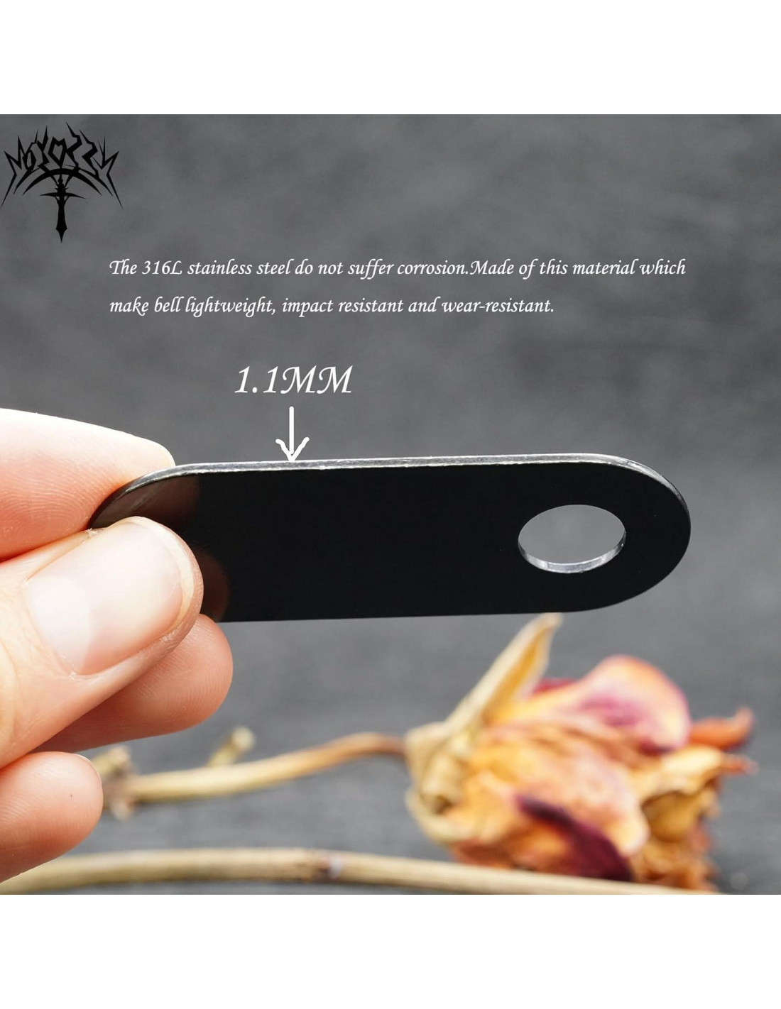 Ahuyenta a los Espíritus Malignos de la Carretera con la Campana de Motocicleta. La leyenda dice que los Espíritus Malignos de la Carretera se han estado aferrando a las motocicletas desde que hay bicicletas en la carretera. Estos Espíritus Malignos son responsables de problemas mecánicos y mala suerte durante un viaje. La leyenda continúa diciendo que al adjuntar una pequeña campana a tu moto, los Espíritus Malignos quedarán atrapados dentro de la campana, donde el constante sonido los vuelve locos, haciendo que pierdan su agarre hasta que caigan al suelo. (¿Alguna vez te has preguntado de dónde vienen los baches?) La leyenda también dice que el misterio de la Campana de Motocicleta tiene el doble de poder cuando es comprada por un amigo o ser querido y dada como regalo. Muestra a alguien cuánto te importa. ¡Ofrece defensa contra los Espíritus Malignos de la Carretera! Regala una Campana de Motocicleta y comparte la Leyenda de la Buena Suerte que ofrece a una motocicleta y su conductor. Amplia gama de usos para la campana del llavero. No solo es adecuada para colgar en motocicletas, sino también como colgantes decorativos para mochilas, árboles de Navidad o collares y otras decoraciones, que se pueden usar en la vida diaria. Como se adapta perfectamente a las necesidades de mascotas pequeñas. El sonido de las campanas es nítido y brillante, lo que permite que tus animales sean encontrados fácilmente.