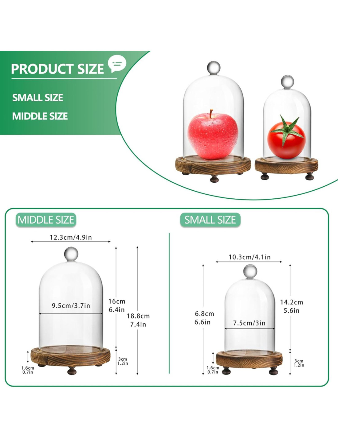 - El Paquete Incluye: 2 piezas de campanas de vidrio en 2 tamaños diferentes, empaquetadas con espuma más resistente.