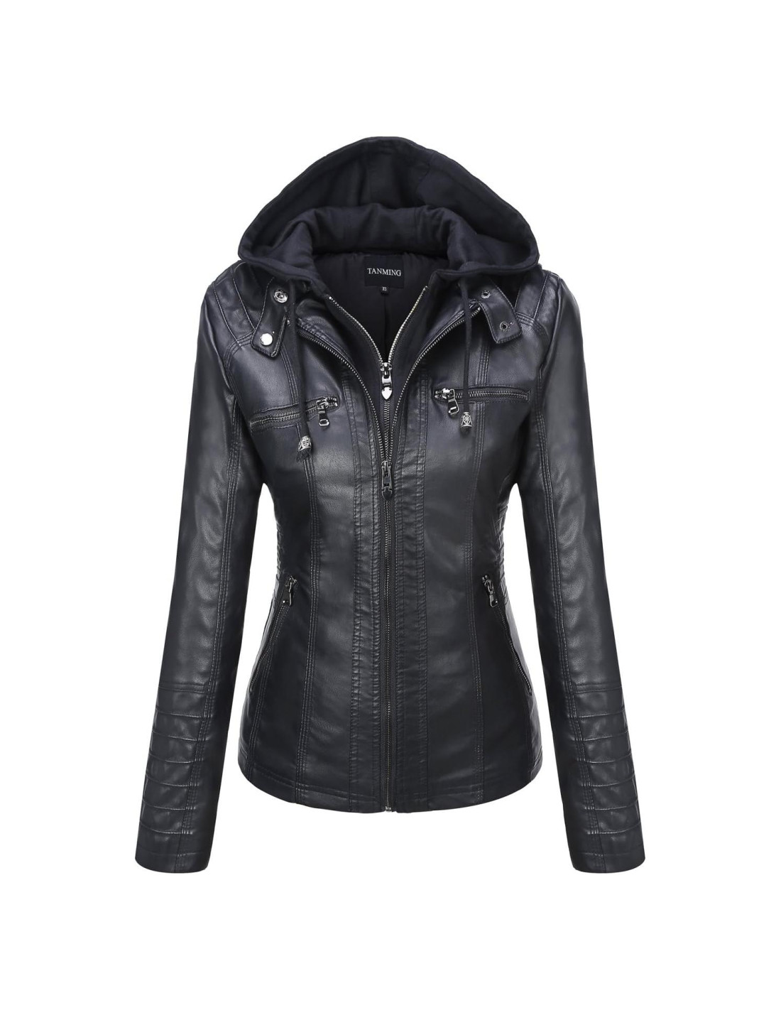 - Diseño: patrón ajustado con elementos de remaches de moda y cremalleras, capucha desmontable conveniente y dos bolsillos inclinados, manga larga, hermosos pliegues en los puños de las mangas y la cintura, diseño de costura perfecto con buena confección