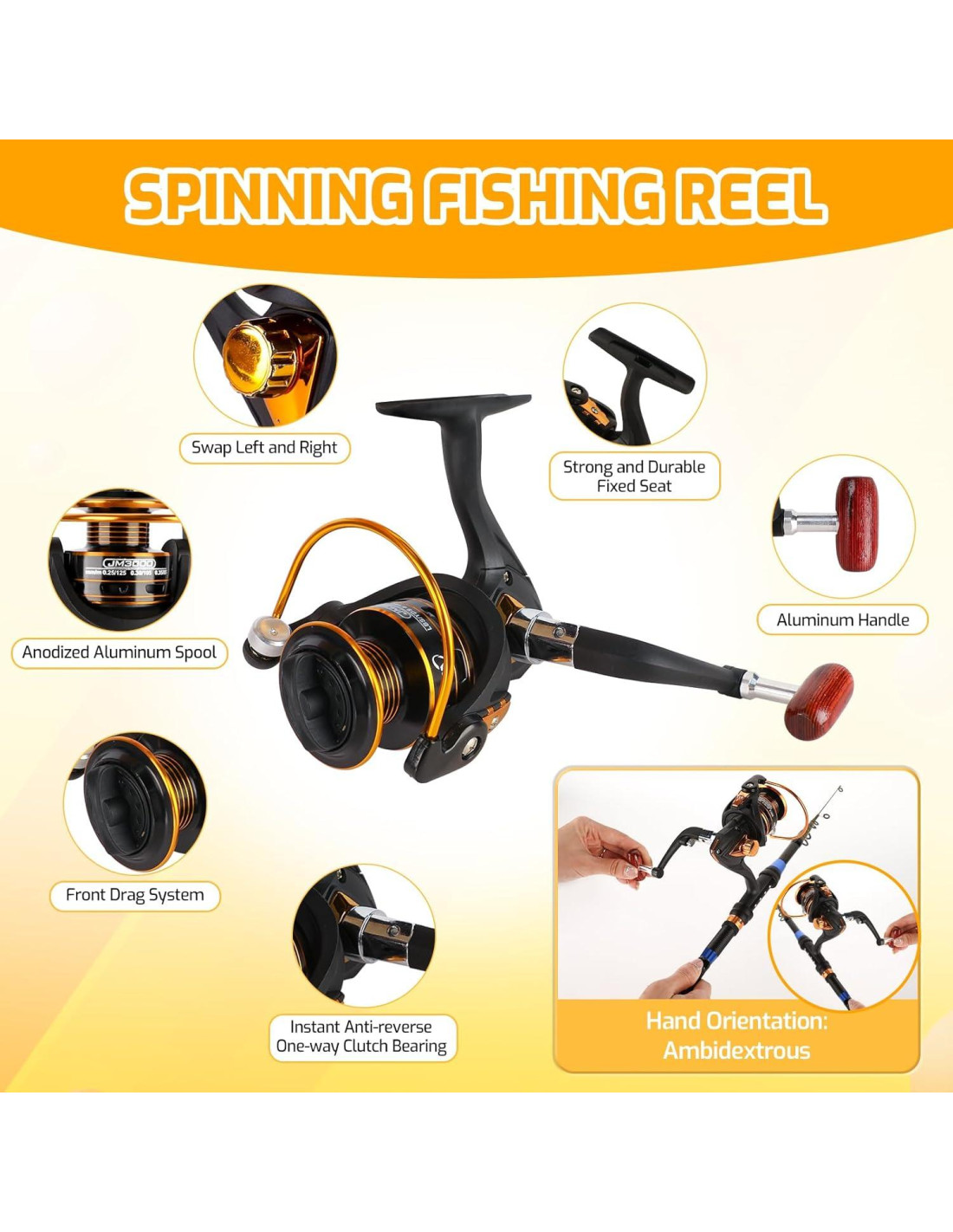 - [ CARRETE SPINCAST AMBIDIESTRO PARA NIÑOS ] El carrete de pesca se puede voltear a la izquierda y a la derecha, ¡usando amigable para todos! Combos de caña y carrete de pesca - caña de pescar telescópica con carrete de spinning mejorado, enrollado/desenrollado ultra suave. No es solo una caña de pescar de juguete