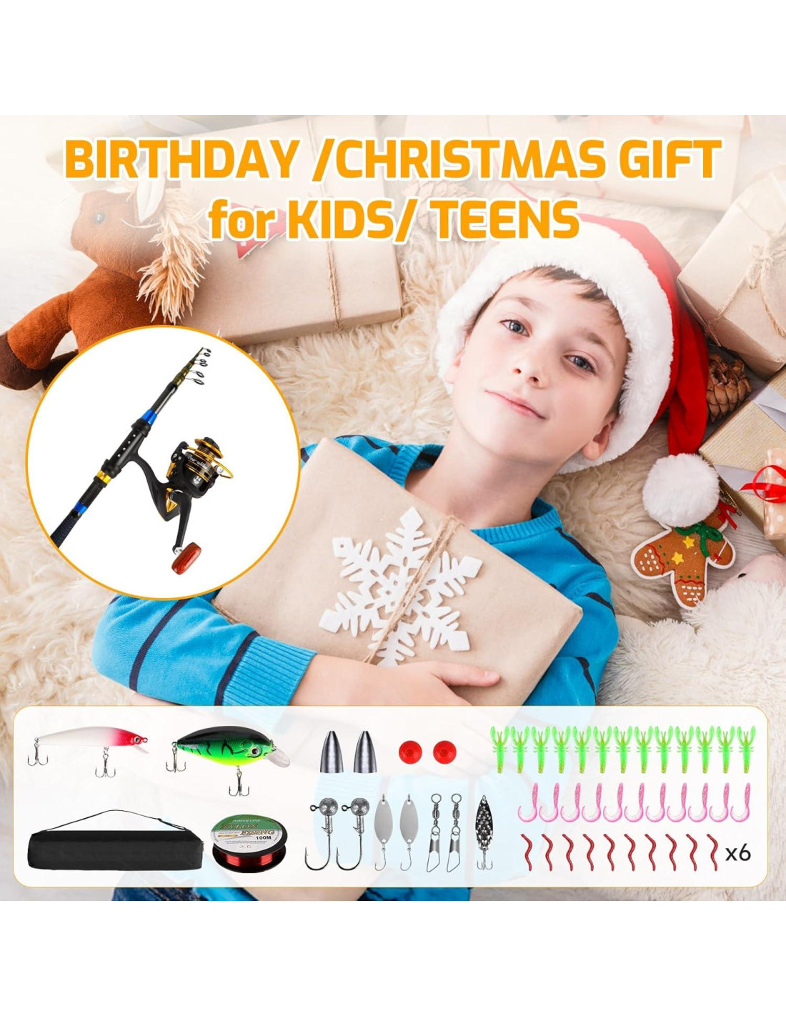 - Juego de caña de pescar ambidiestra para niños, kit de caña de pescar telescópica y carrete para niños, regalo de juguetes para niños con carrete de pesca spincast, accesorios de pesca, señuelos de pesca, líneas de pesca