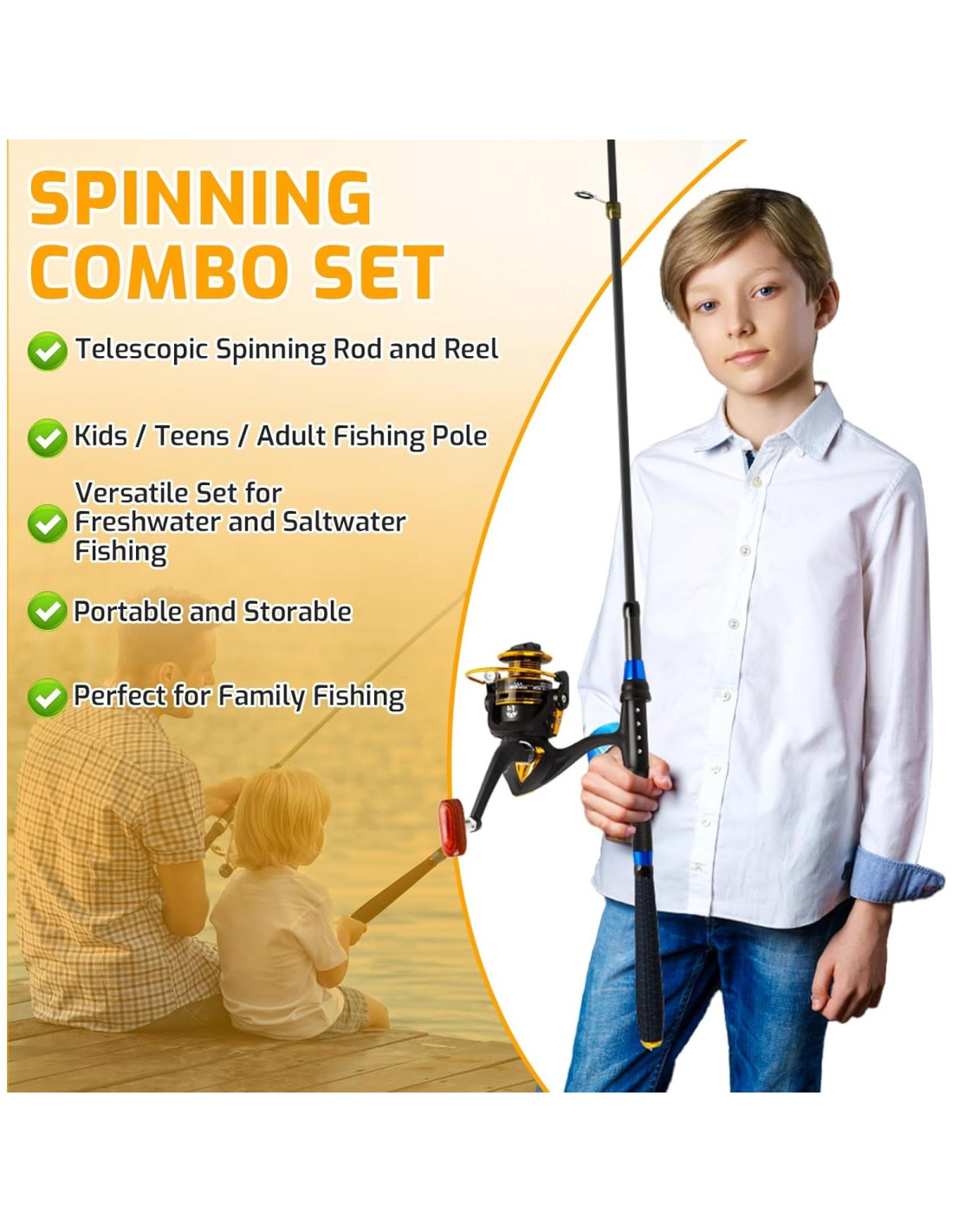 - [ CAÑAS DE PESCA PARA NIÑOS DE 5 A 10 AÑOS REGALO ] Los niños pueden aprender mucho de la pesca. Como paciencia, confianza, fortalecer el equilibrio y la coordinación. La pesca no solo promueve un estilo de vida saludable al aire libre para los jóvenes, sino que también crea recuerdos divertidos y duraderos. ¡Sal al aire libre, ten una aventura y crea recuerdos que durarán toda la vida! Prepárate para una aventura al aire libre hoy. Esta caña de pescar y carrete para niños es un gran regalo para cumpleaños, día del niño, Navidad